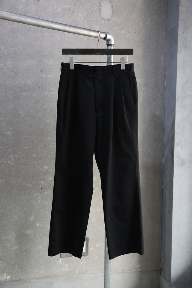 【ポロ バイ ラルフローレン】 2タックチノパンツ ポロチノ HAMMOND PANT 薄手で滑らかなコットン生地 2タック 裾シングル 部分的に使用感によるアタリ、褪色あり(少し青みがかって見えます) 前面サイドのポケット縁にスレあり 背面左ポケットのボタン欠損 丈詰めされています 年代1990年代頃 素材:コットン100% カラー:ブラック サイズ表記: W38 × L32 ー実寸(約cm)ー ウエスト:97 レングス:75 股上:37.5 わたり幅:35.5 裾幅:23 総丈:107.5 th070392