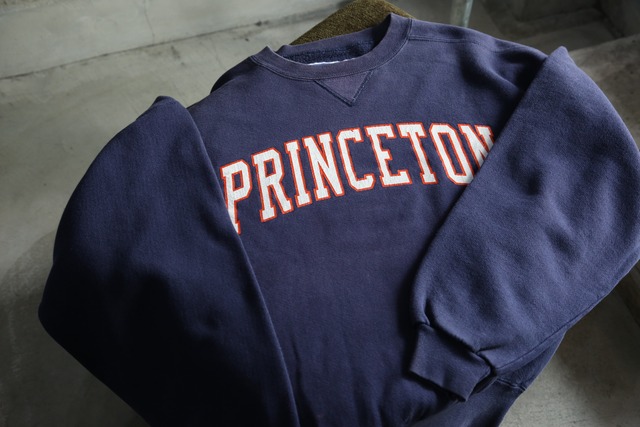 【ラッセル アスレチック】 スウェットシャツ ハイコットン コットン割合多めのがっしりとした生地 カレッジプリント PRINCETON 前V 裏起毛 丸っこいシルエット アメリカ製 褪色あり 部分的に汚れ、シミあり 袖口にダメージあり 年代: 1990年代頃 素材: コットン95% ポリエステル5% カラー:ネイビー サイズ表記 : L ー実寸(約cm)ー 肩幅:63.5 身幅:61.5 袖丈:54.5 着丈:60.5 th060263