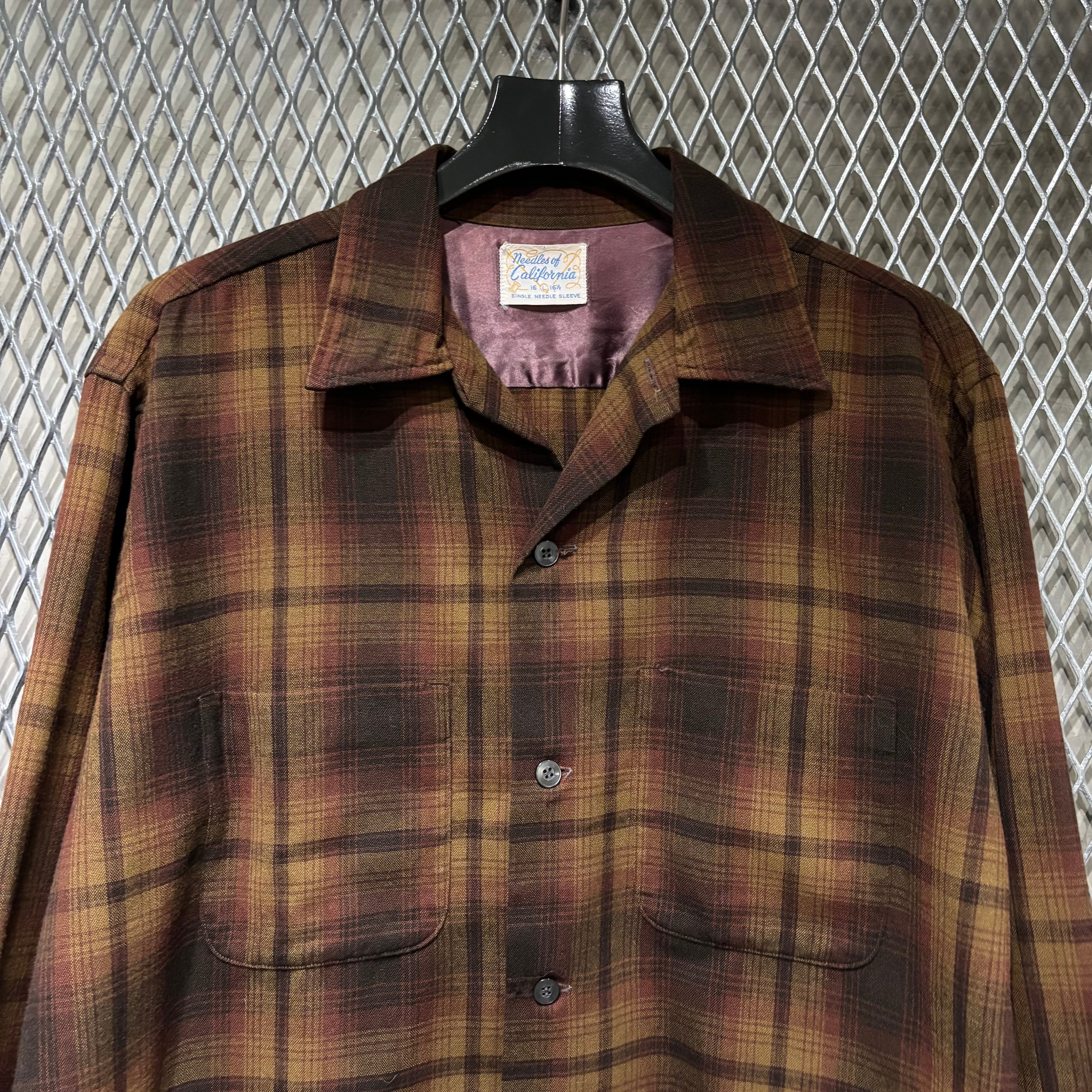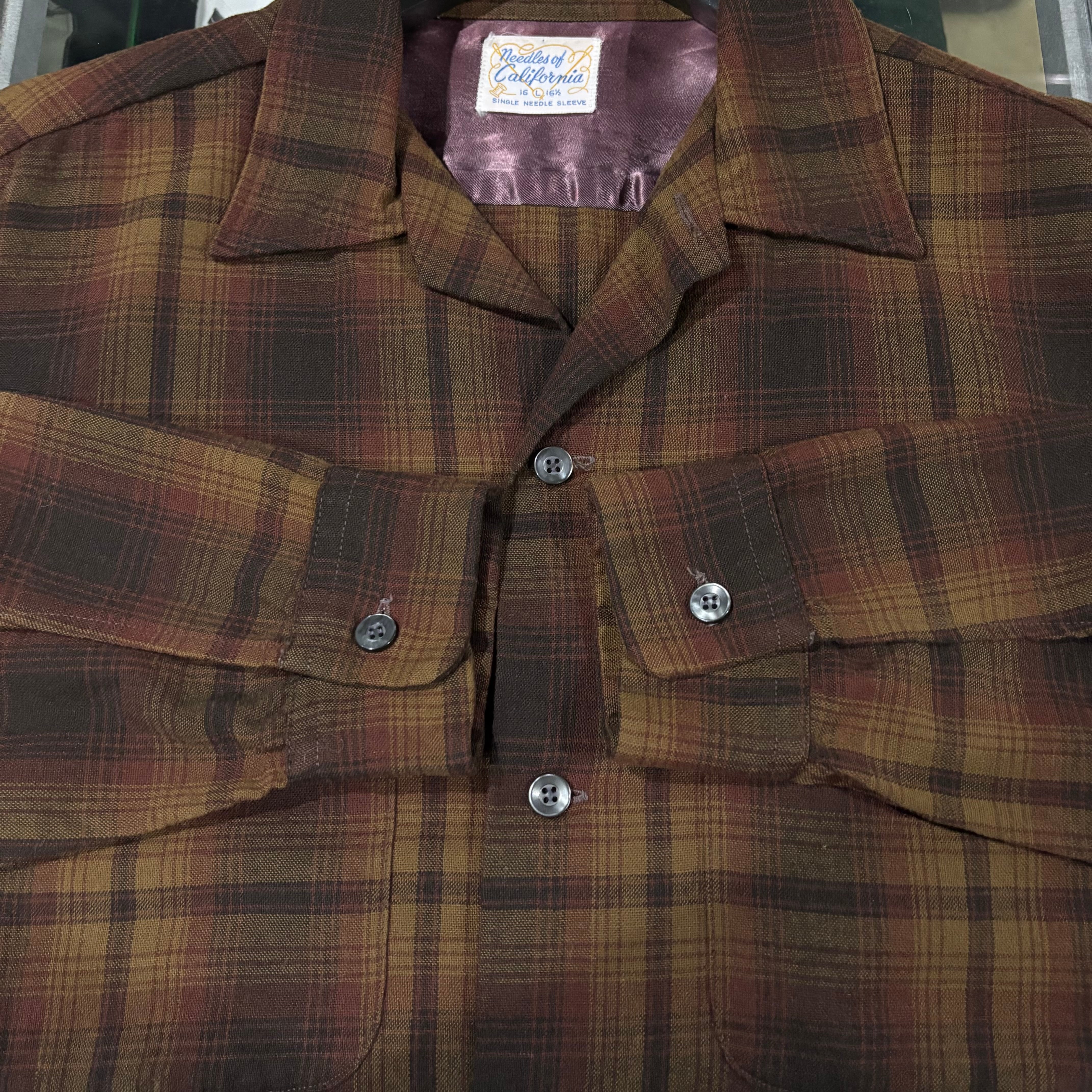 60s【needles of california】L/S Wool Open Collar Shirt