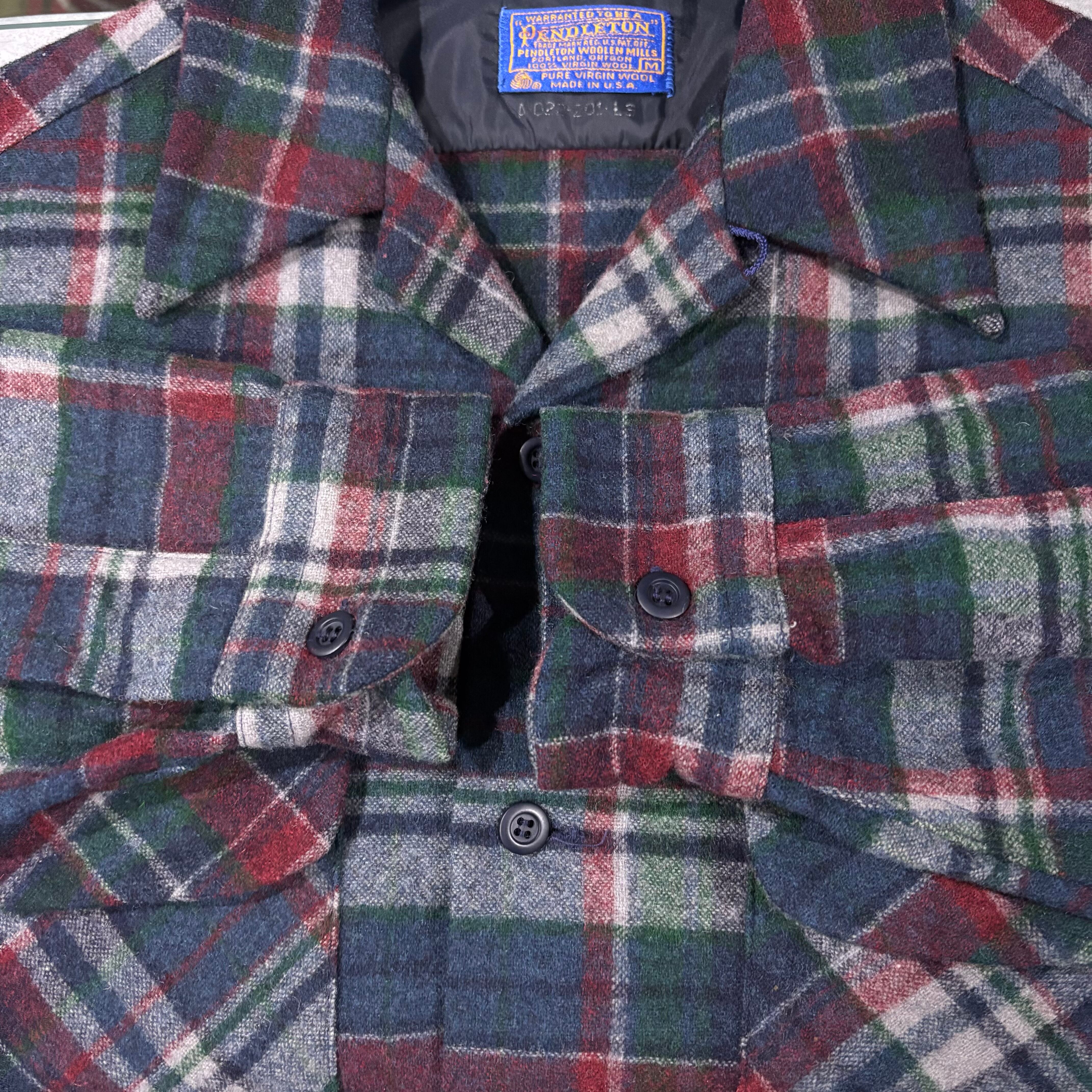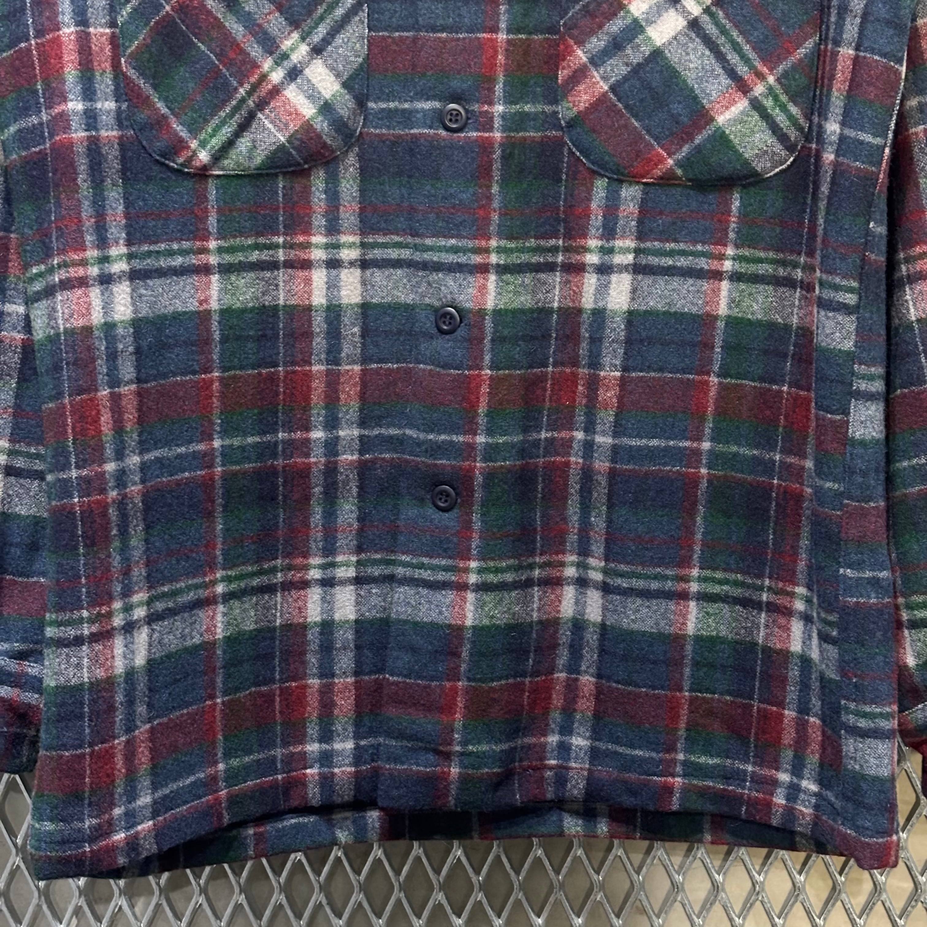 70s【Pendleton】L/S Wool Open Collar Shirt USA製