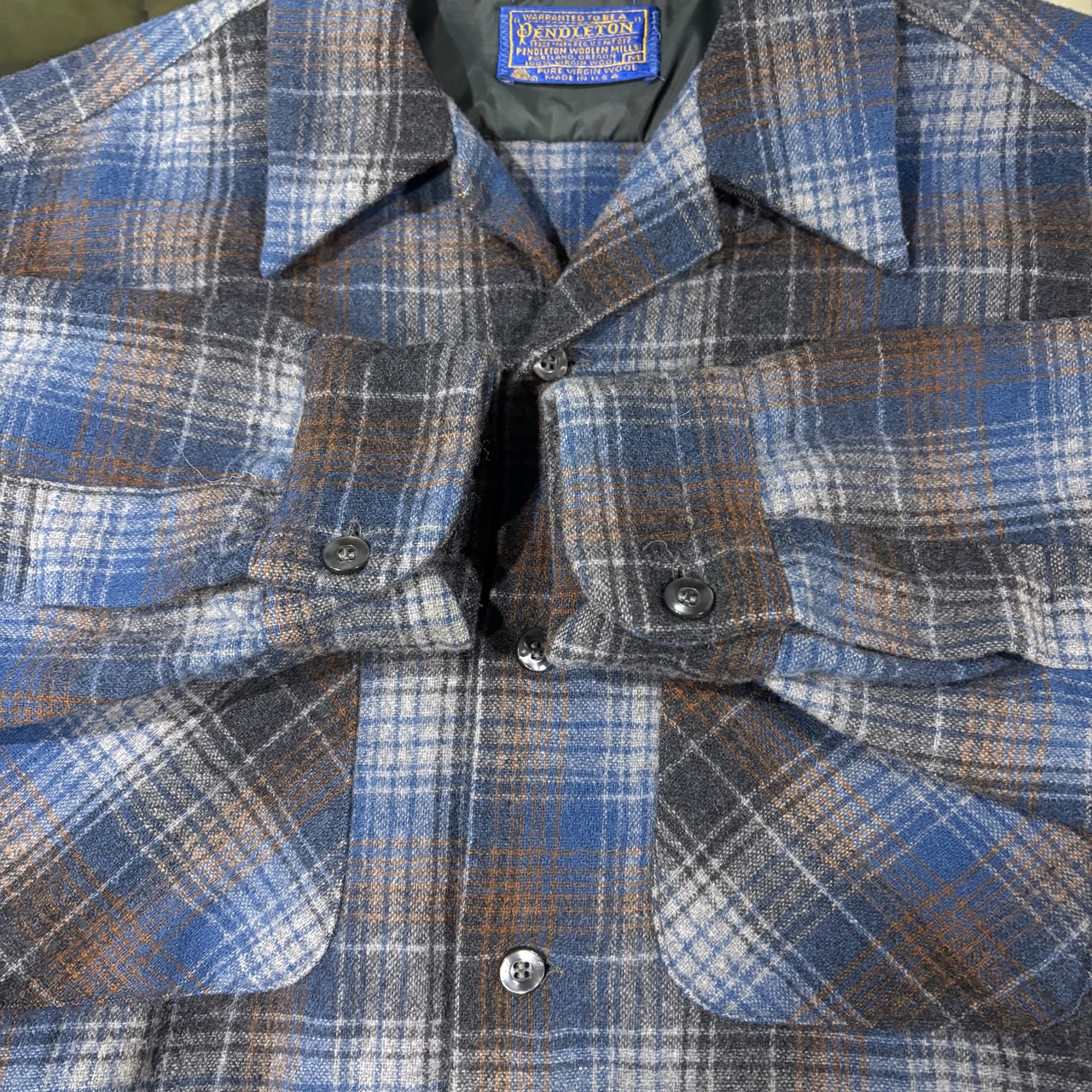70s【Pendleton】Open Collar Wool Shirt USA製