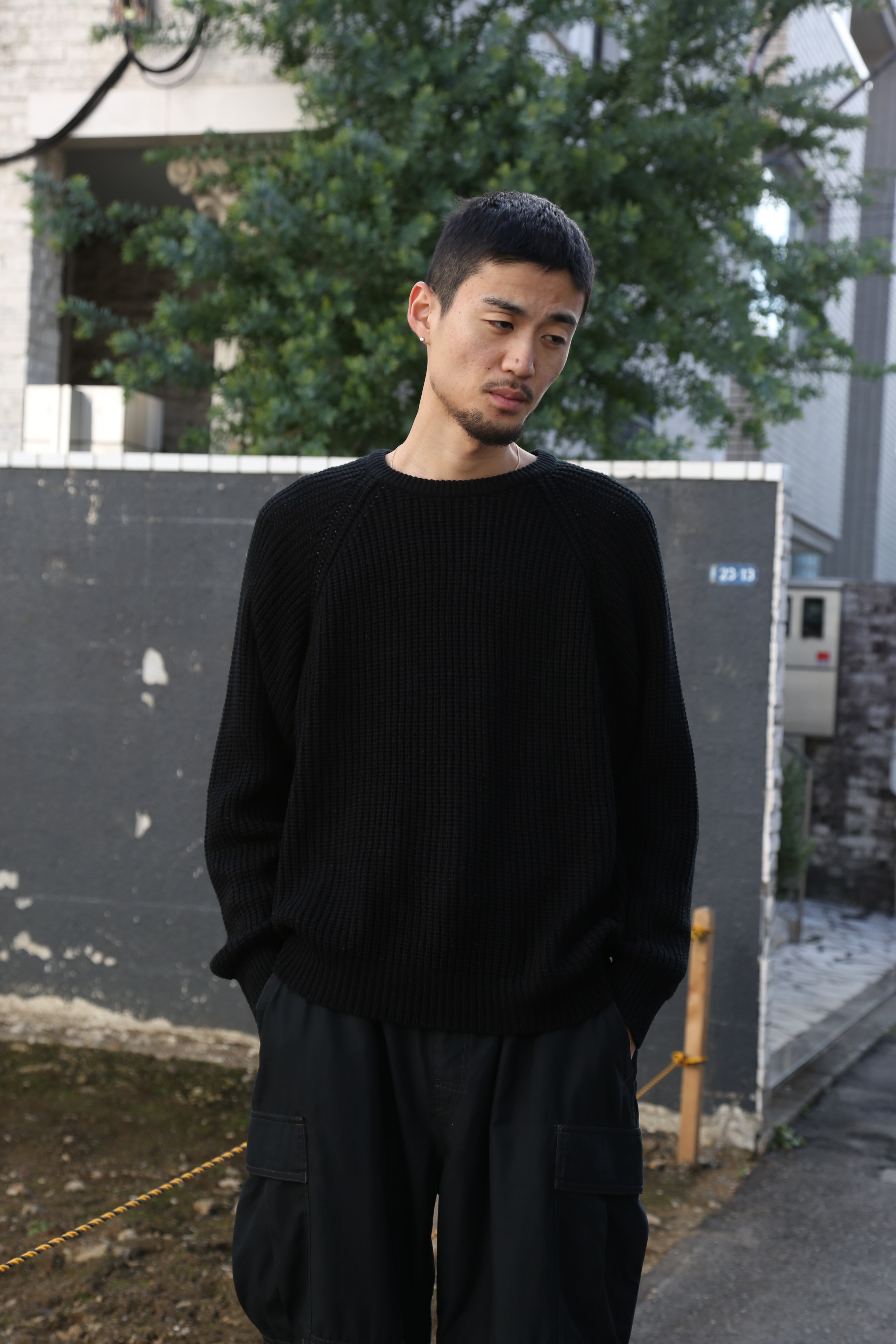 ざっくり編まれたローケージニット