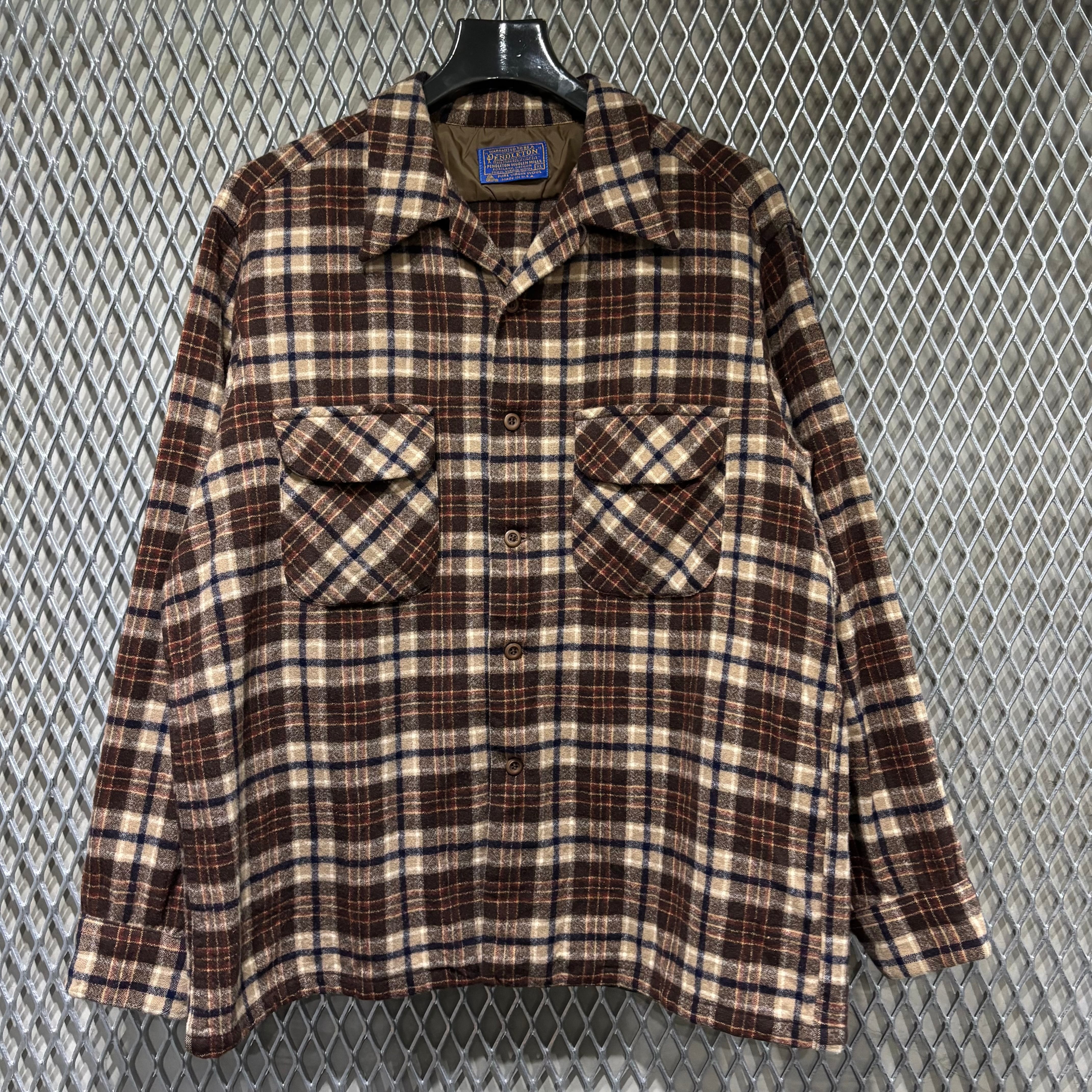 70s【Pendleton】Open Collar Wool Shirt USA製