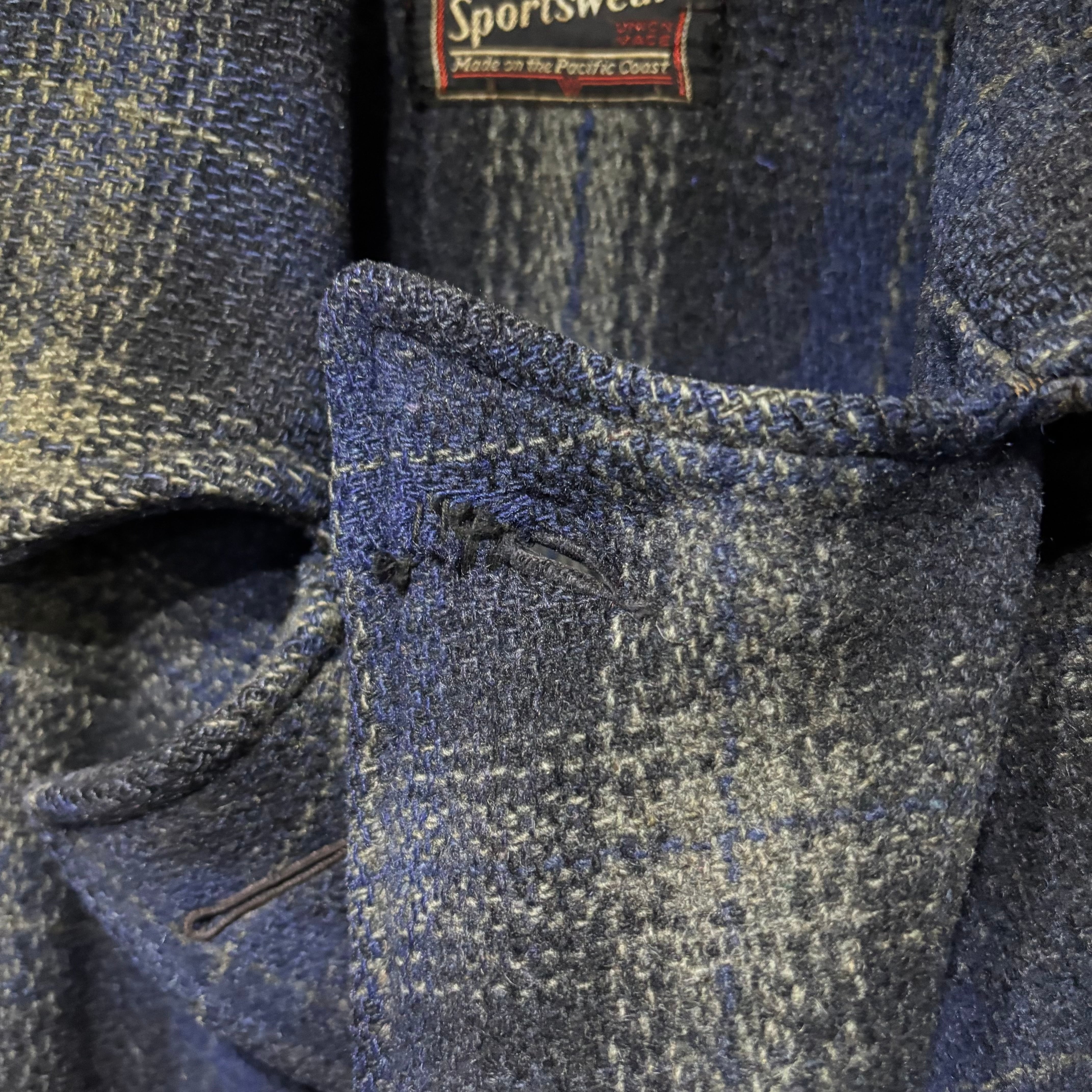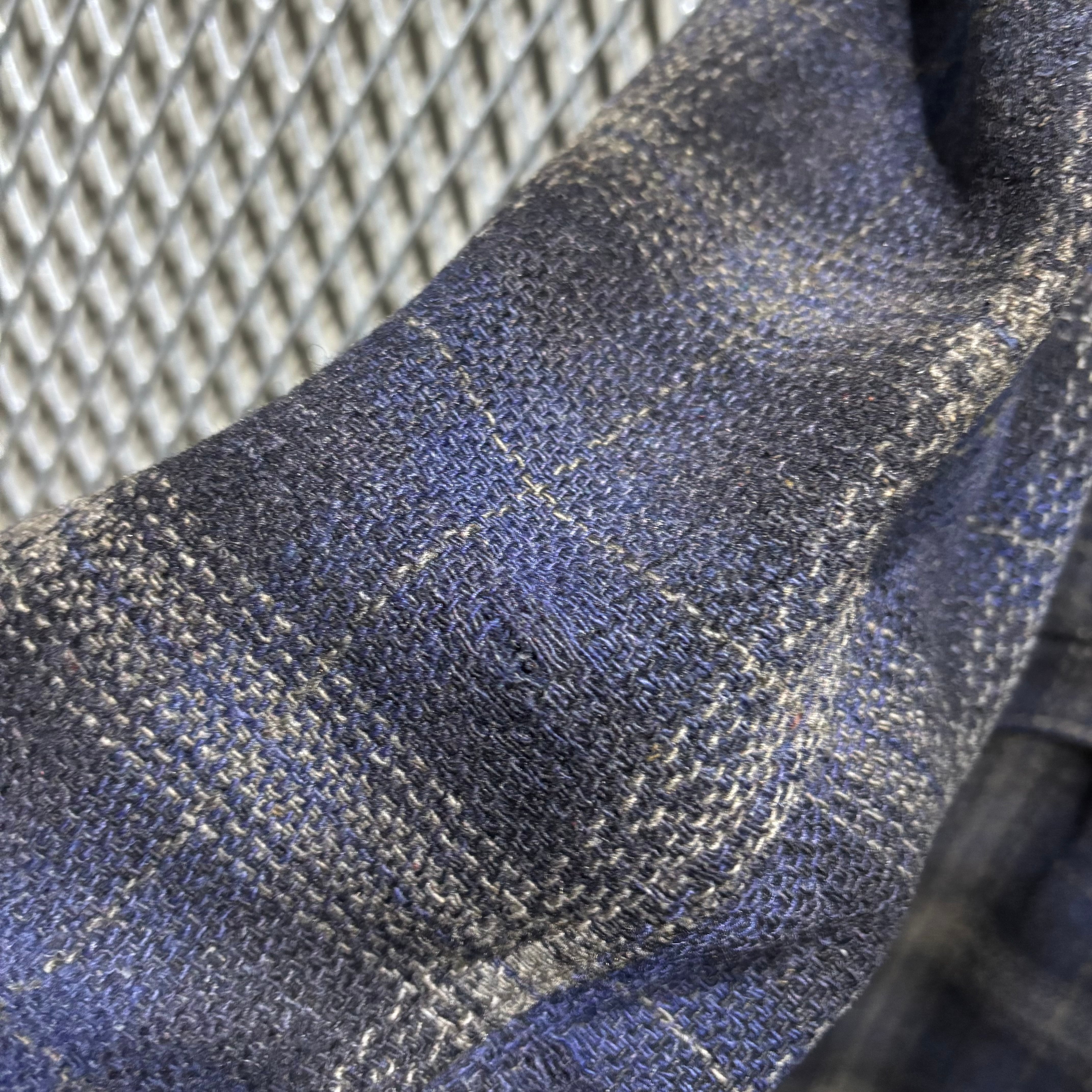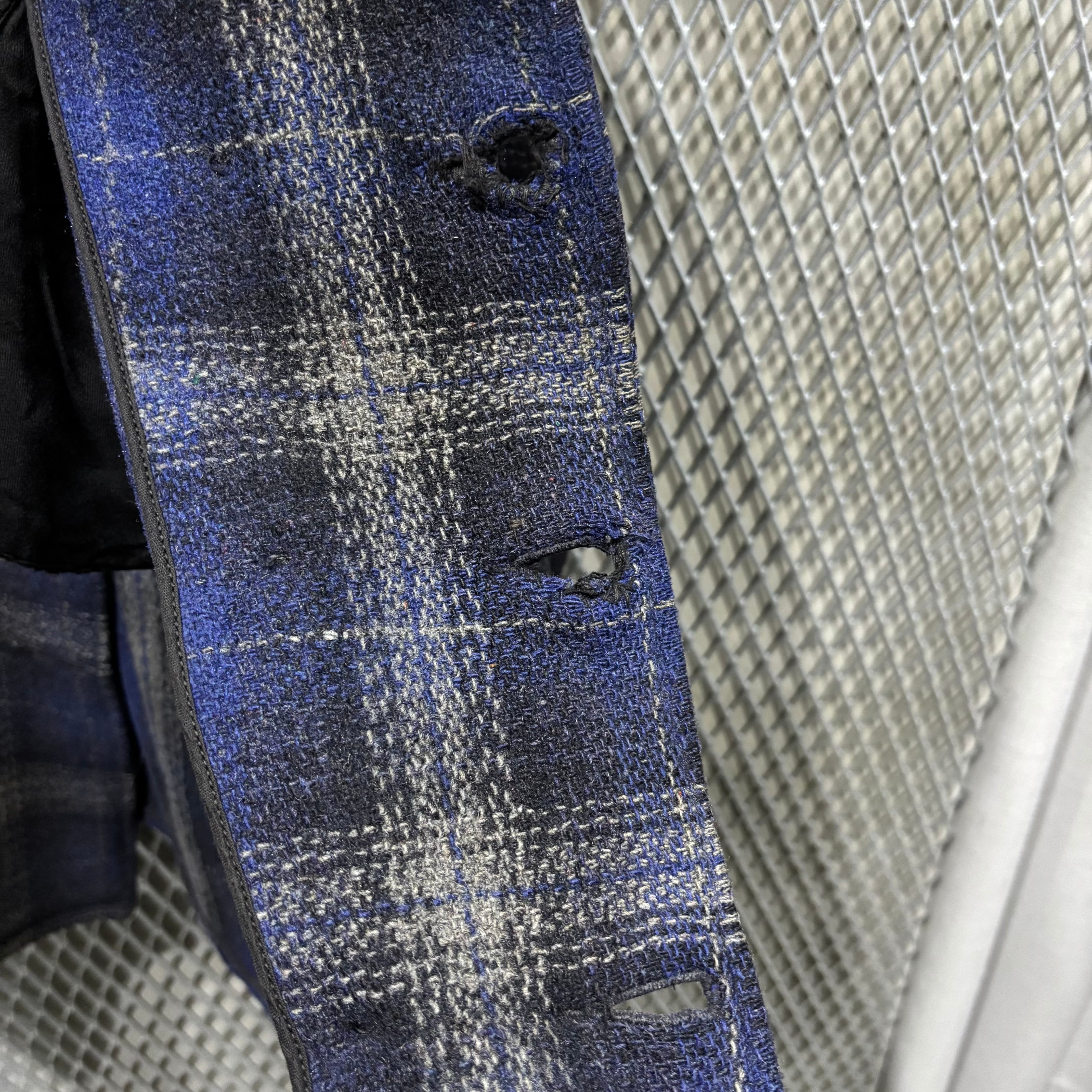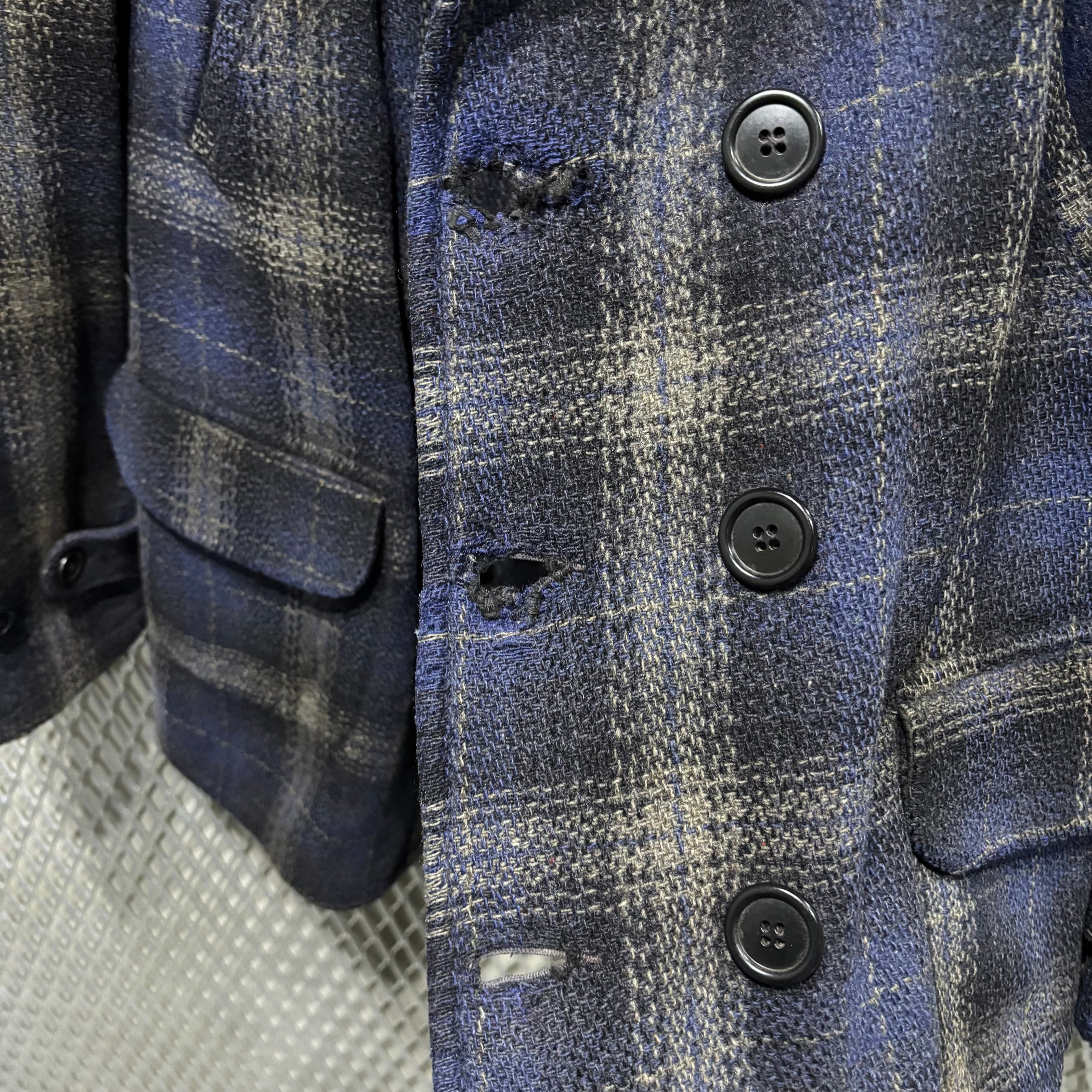 ボタンホールにほつれ、リペアあり