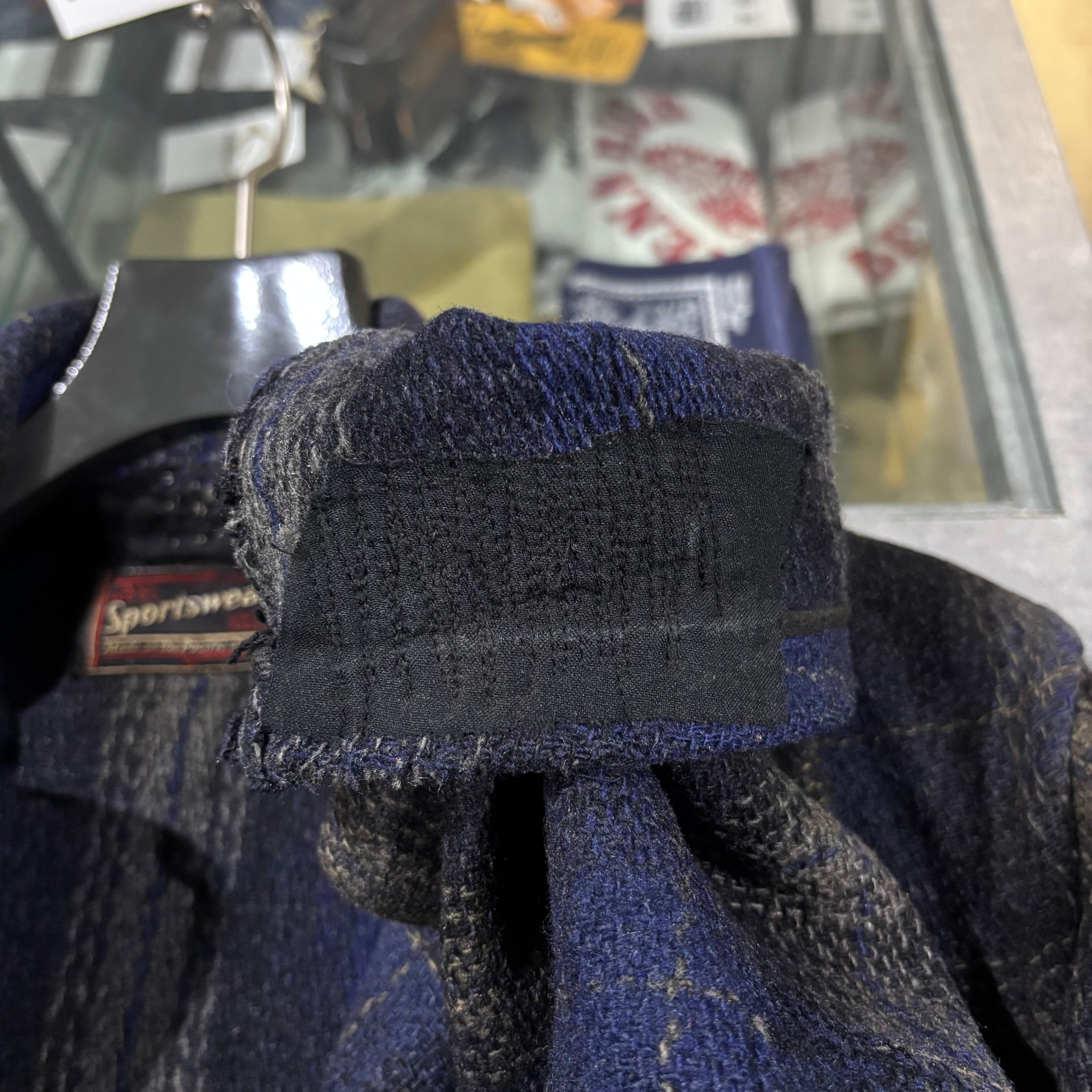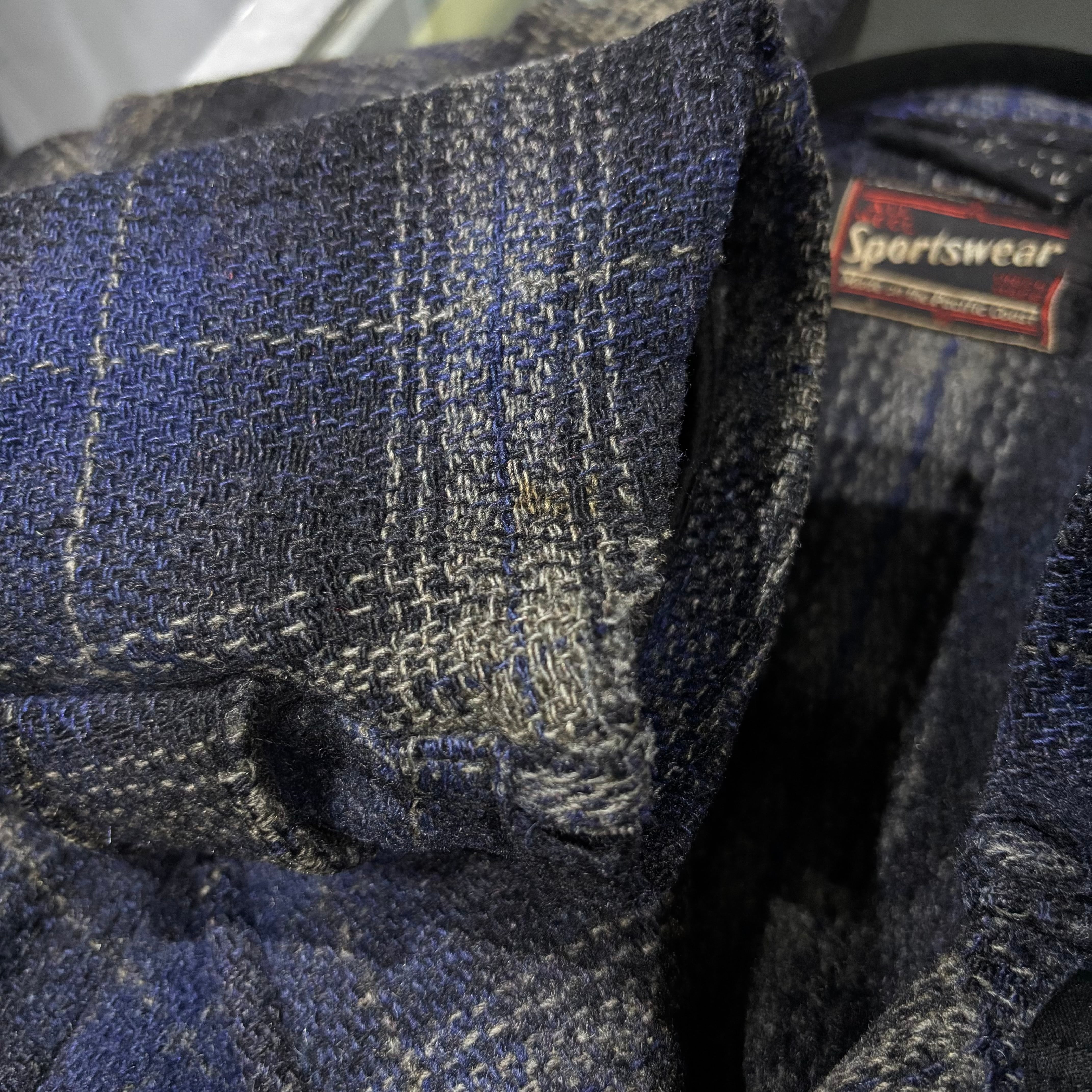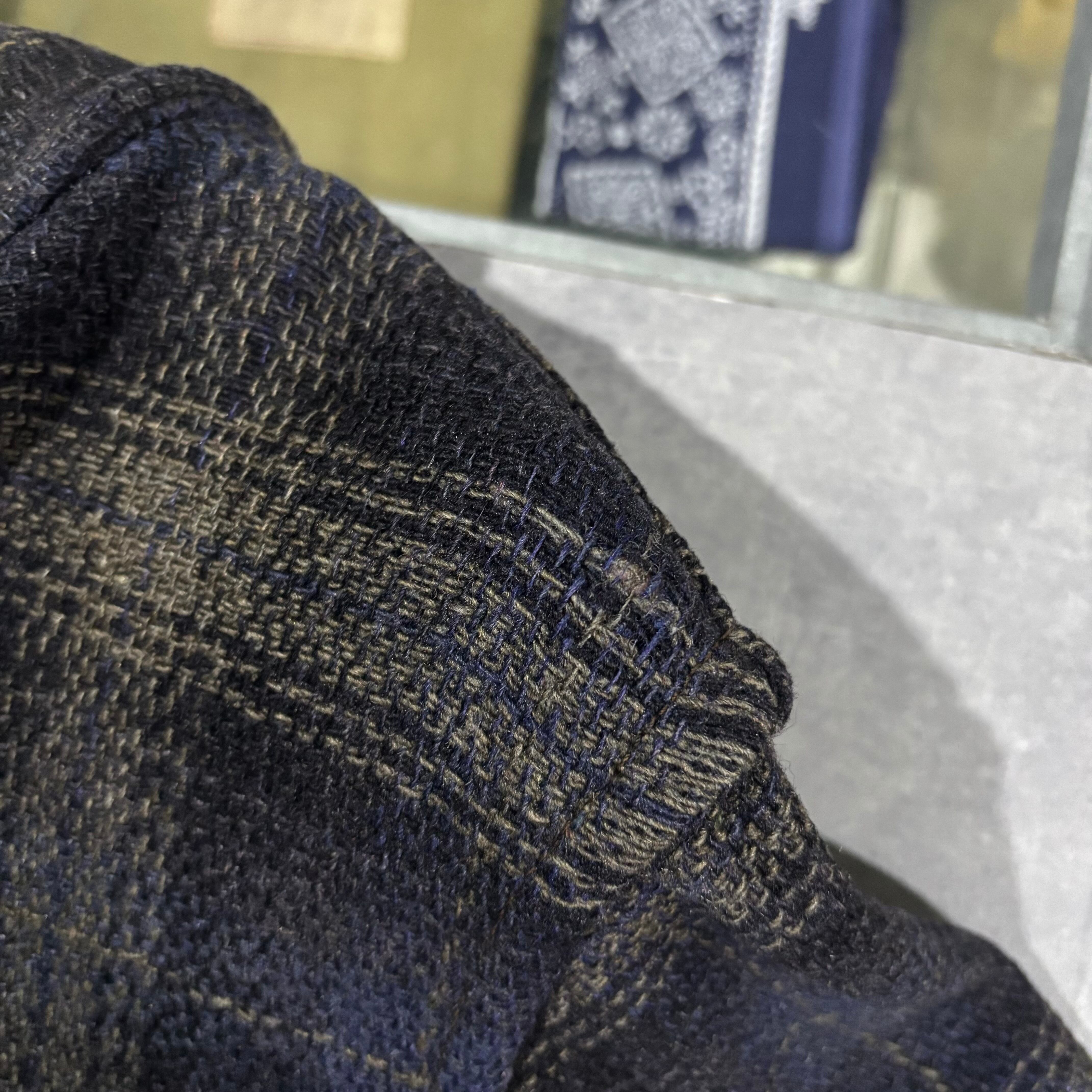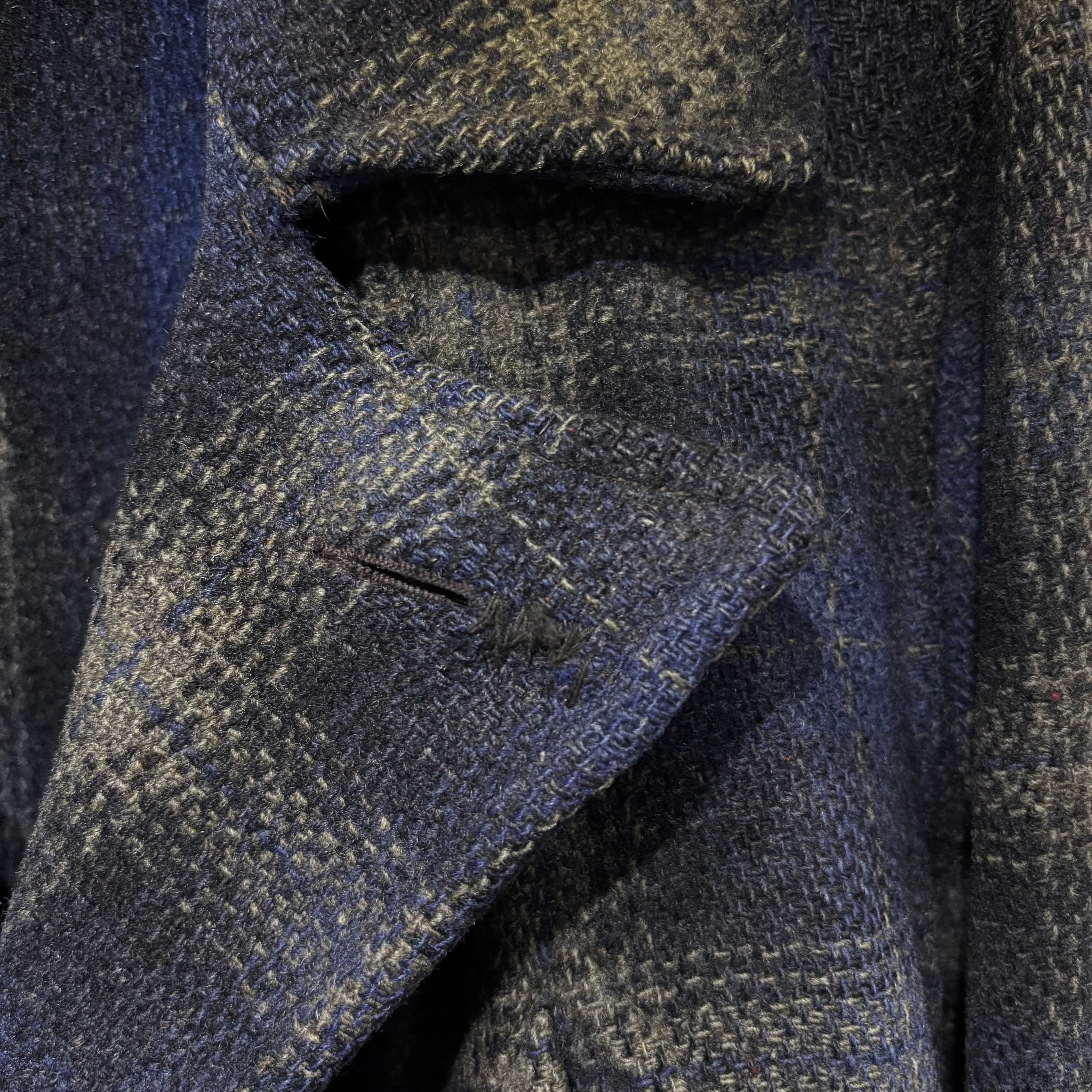 ボタンホールにほつれ、リペアあり