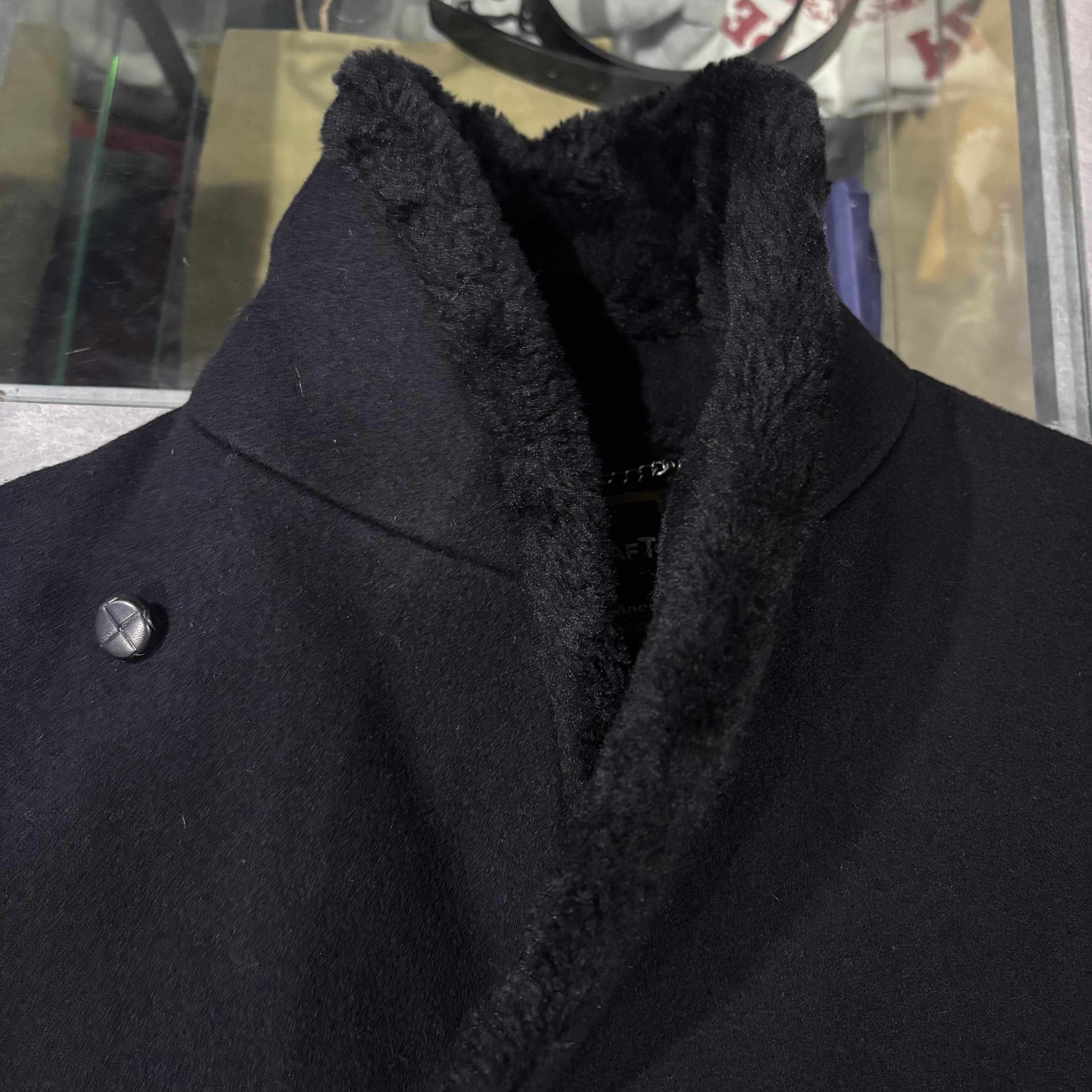 厚みのあるウール生地に柔らかいボアライニングでしっかり防寒性の高いハーフコート