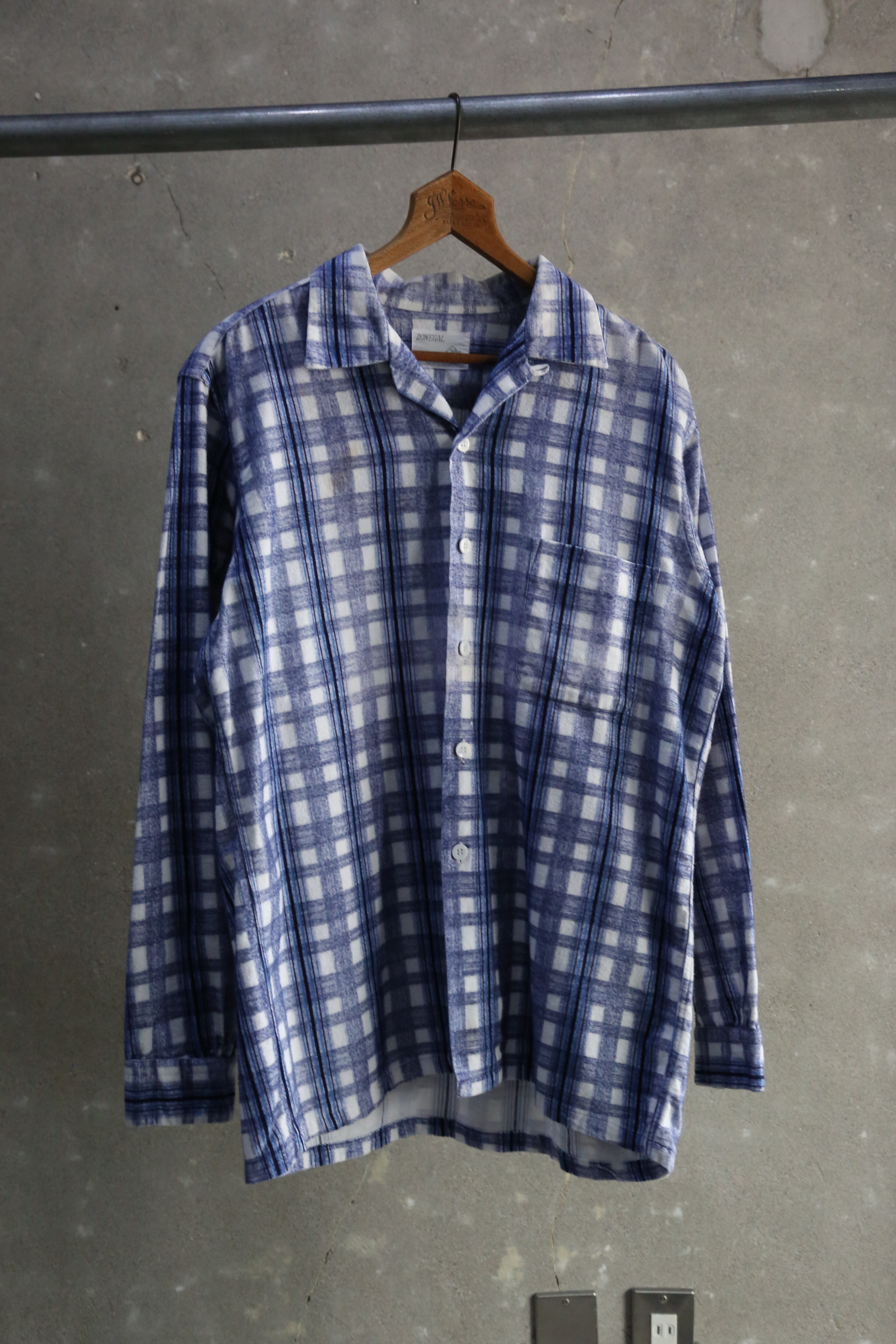 50~60s【DONEGAL】L/S Open Collar Print Flannel Shirt
