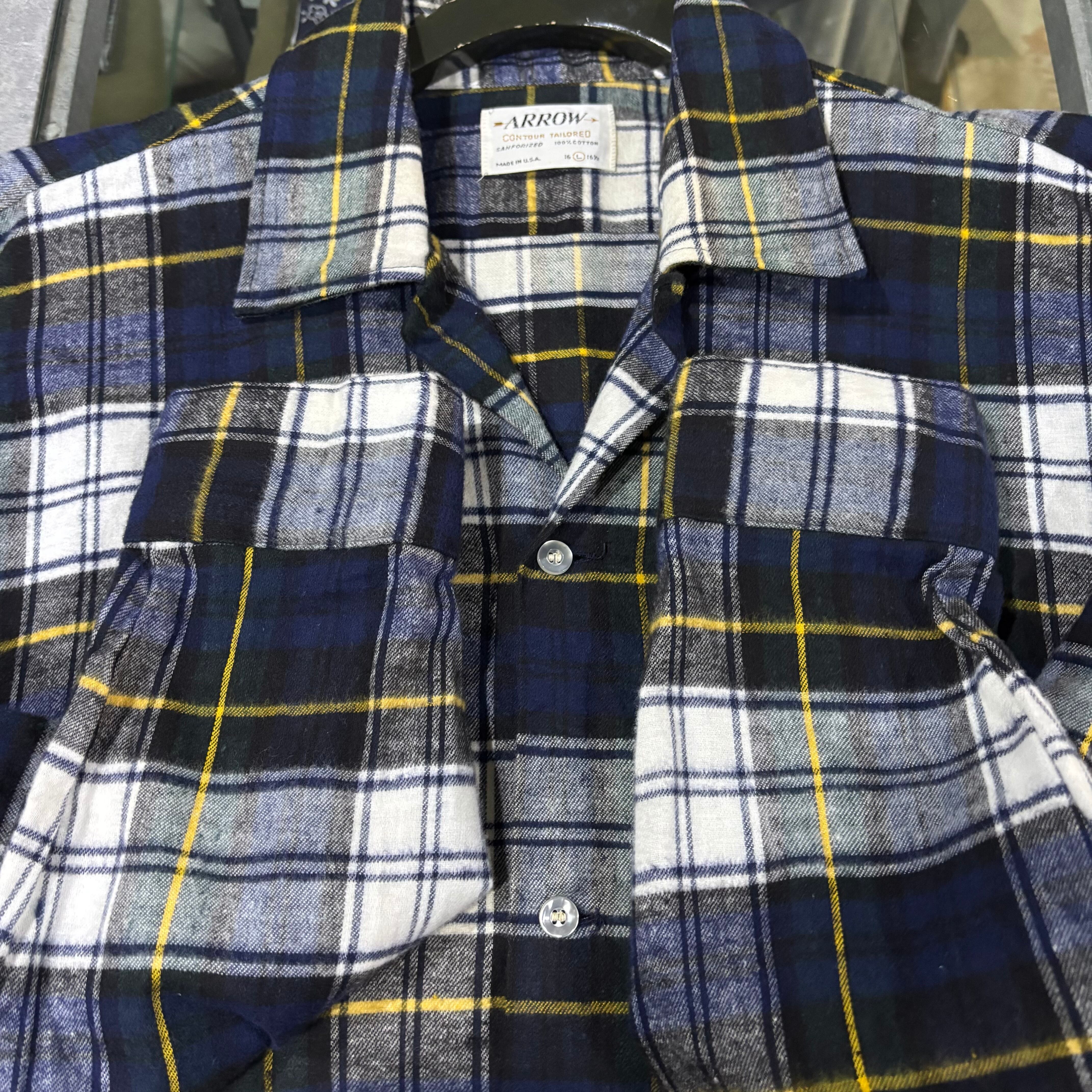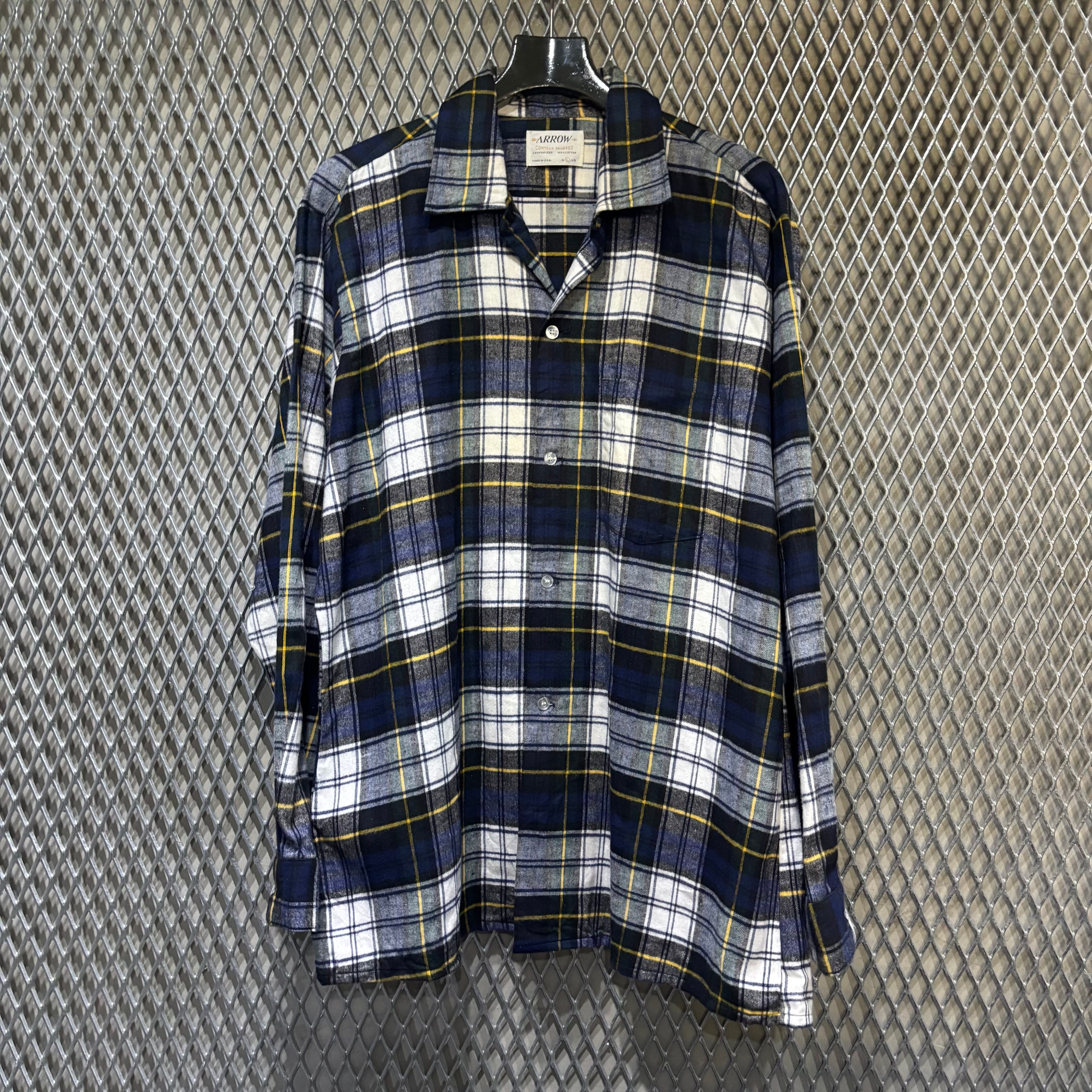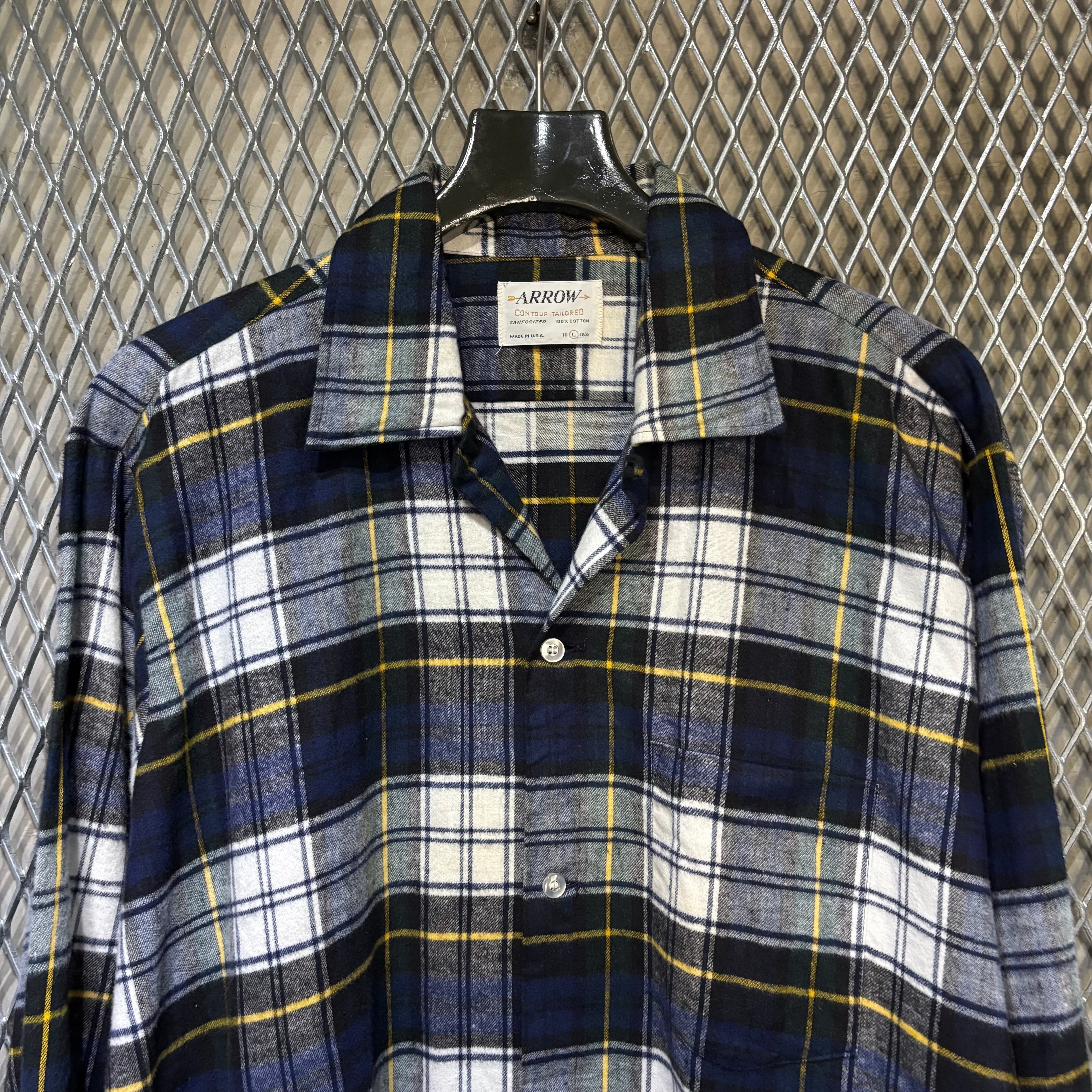 60s【Arrow】L/S Open Collar Flannel Shirt USA製