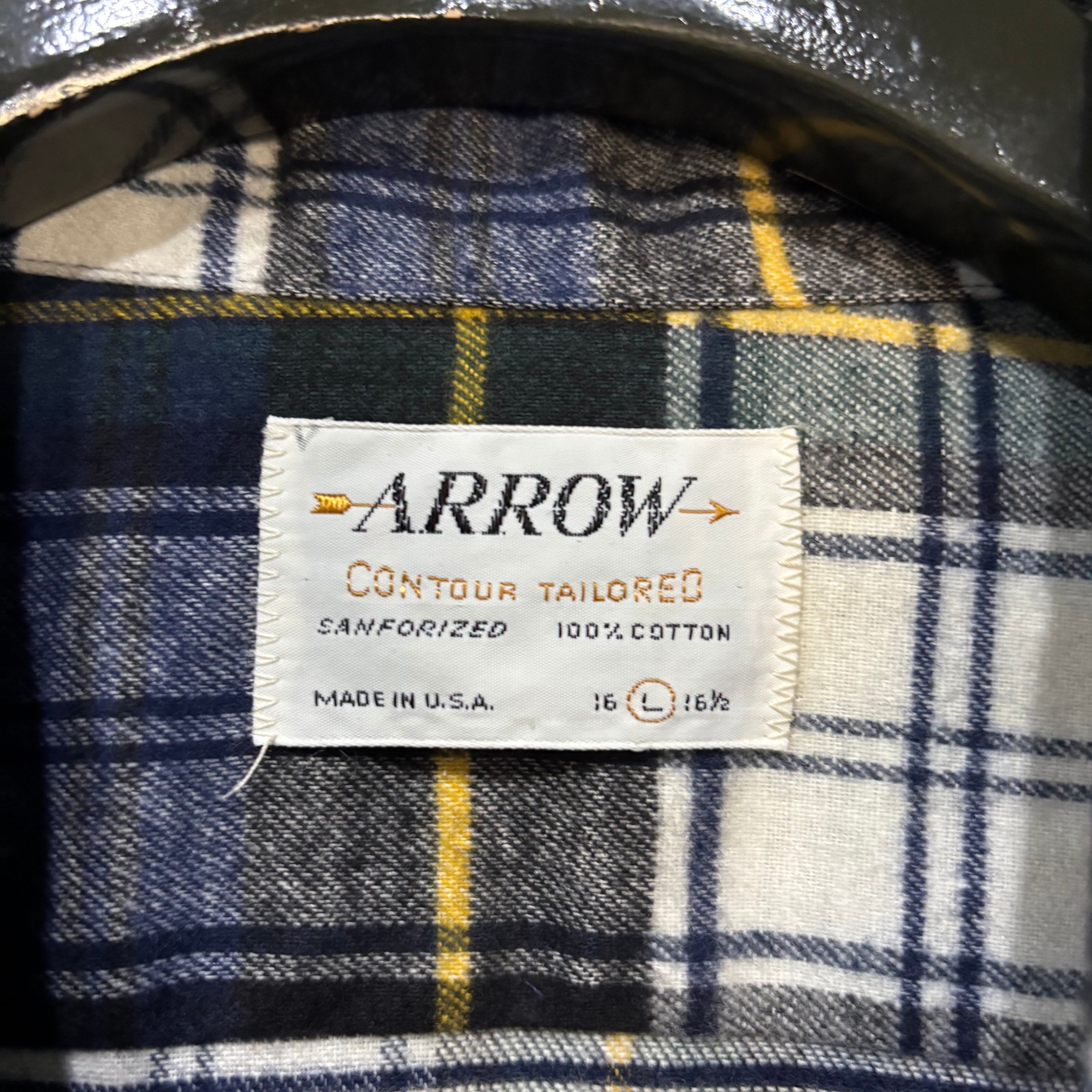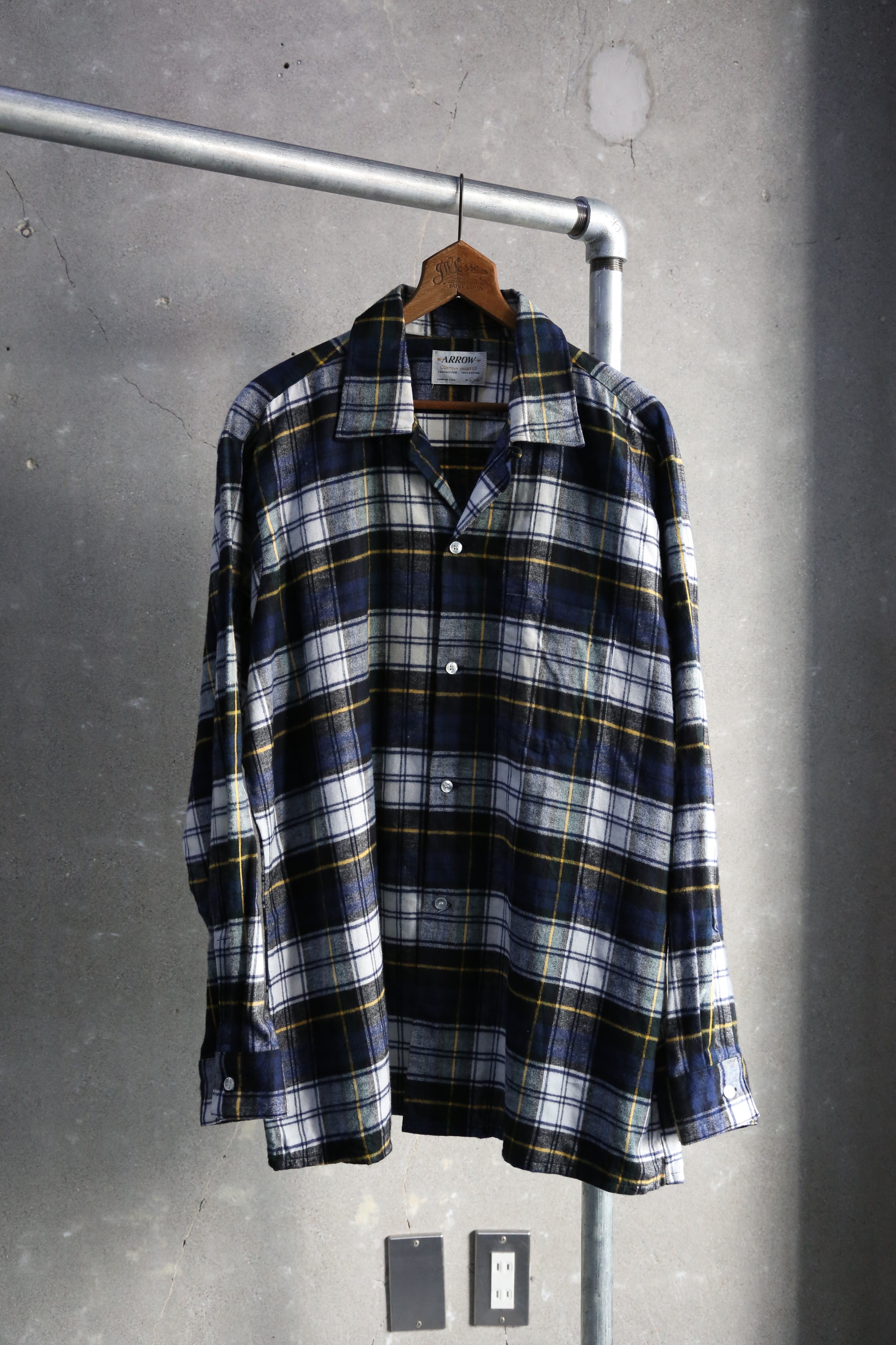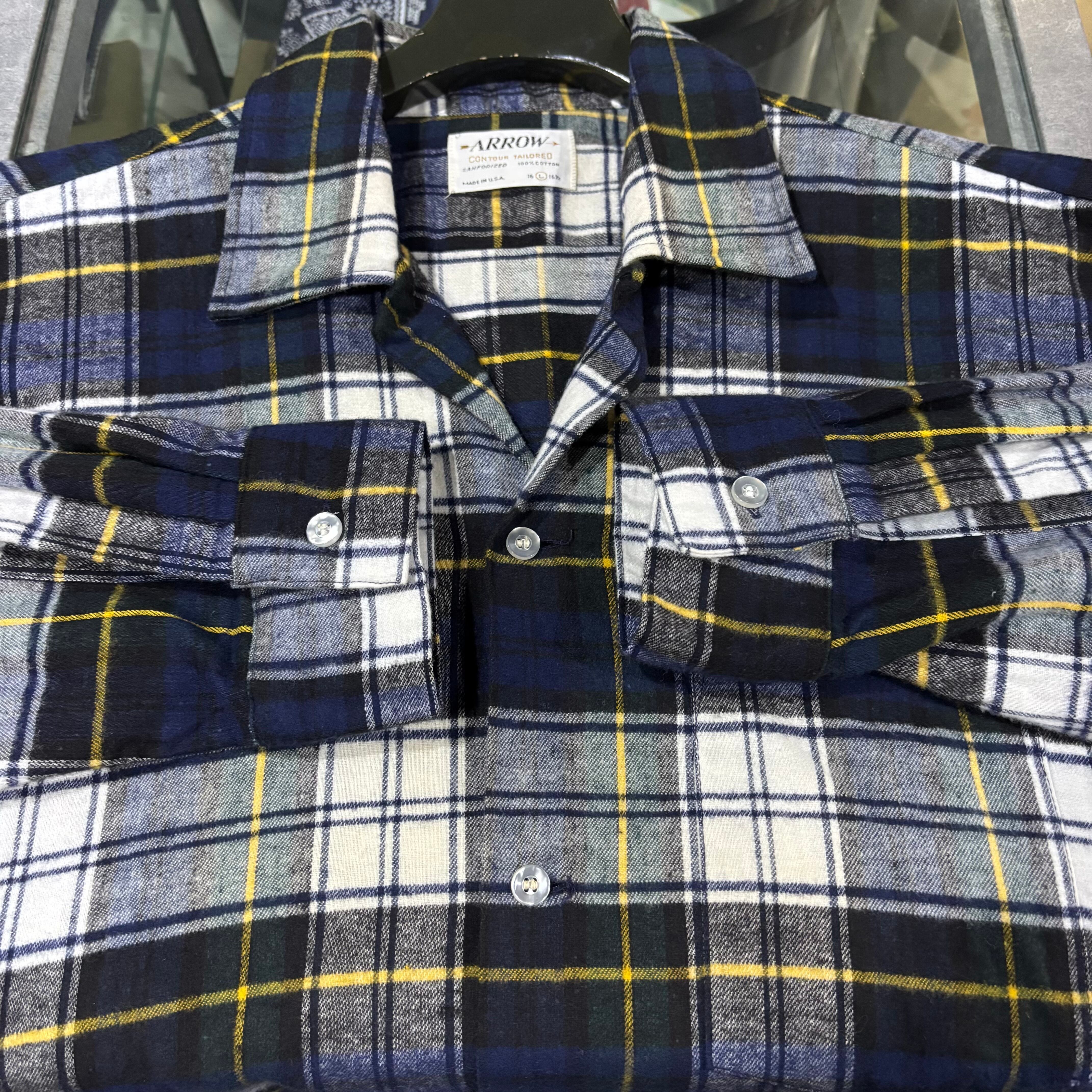 60s【Arrow】L/S Open Collar Flannel Shirt USA製