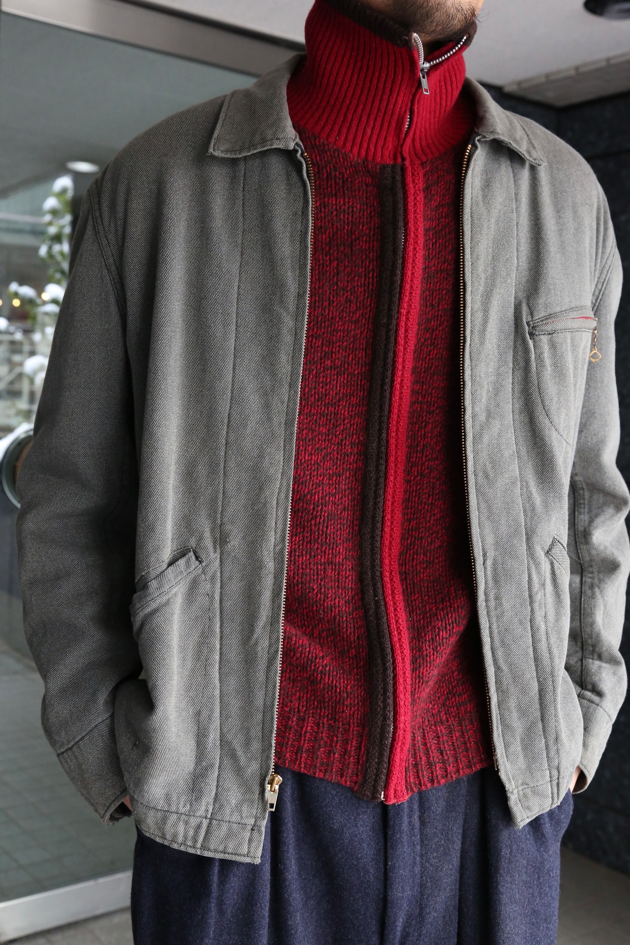 胸ポケット菱形タロンジッパー