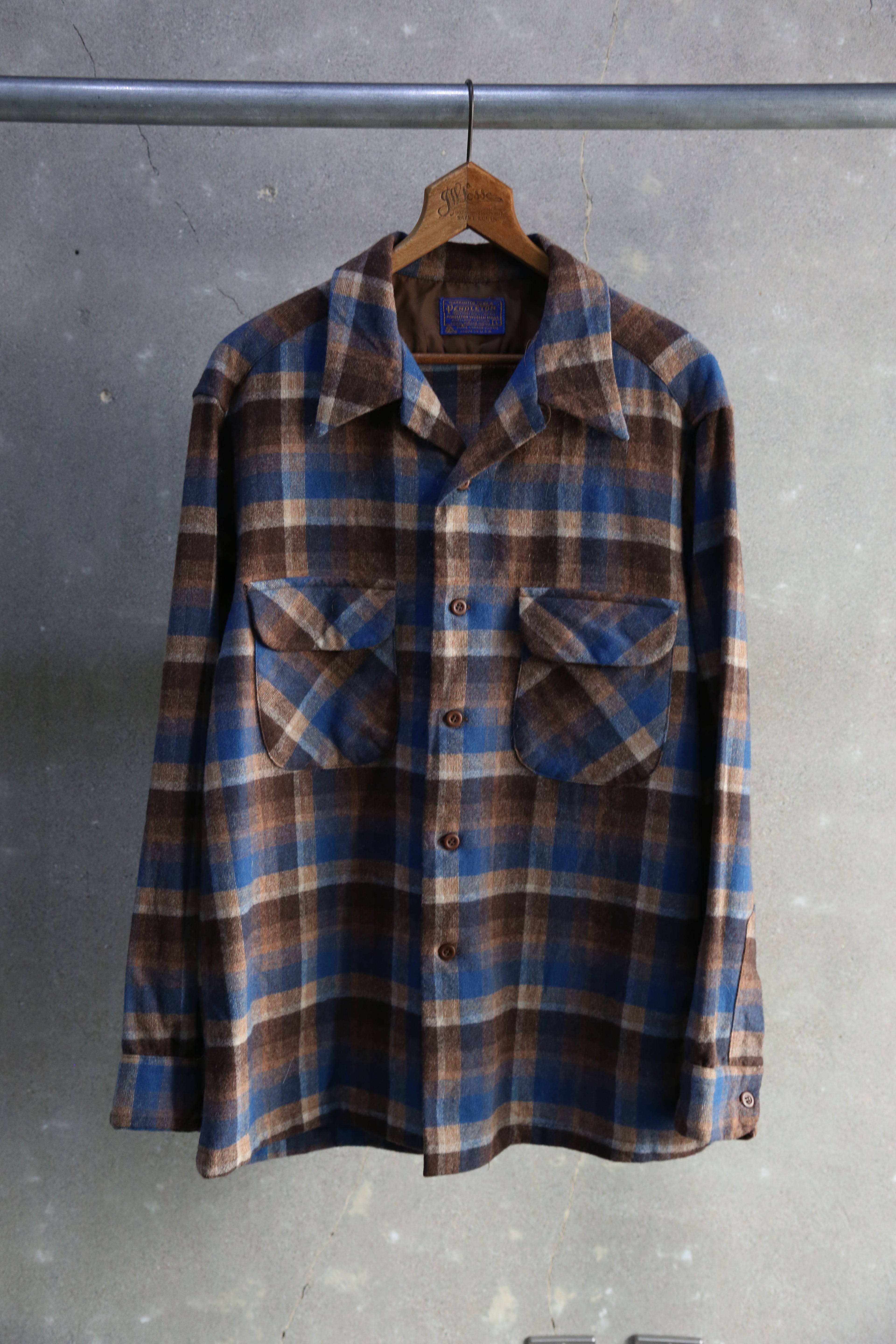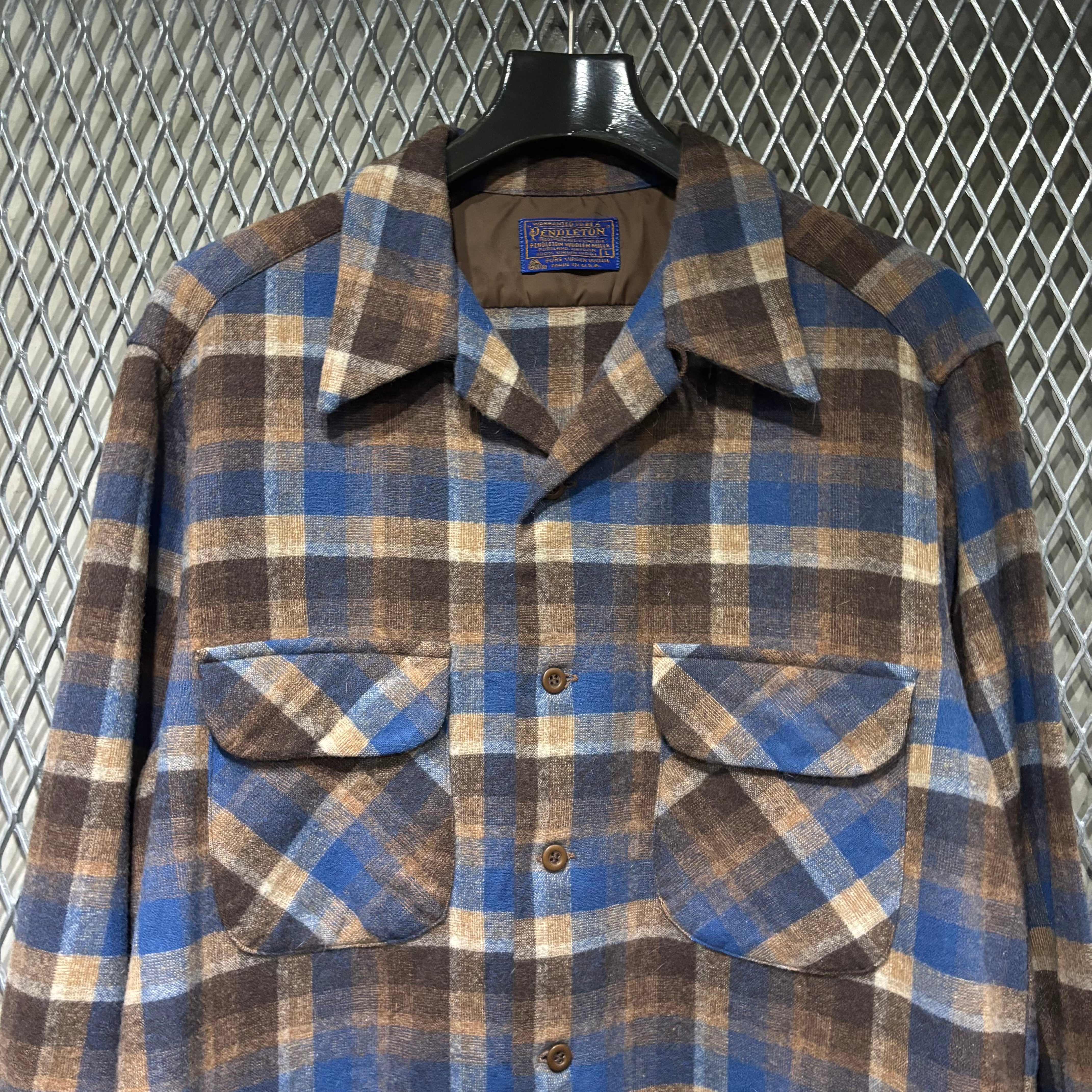 70s【Pendleton】Wool Open Collar Shirt USA製
