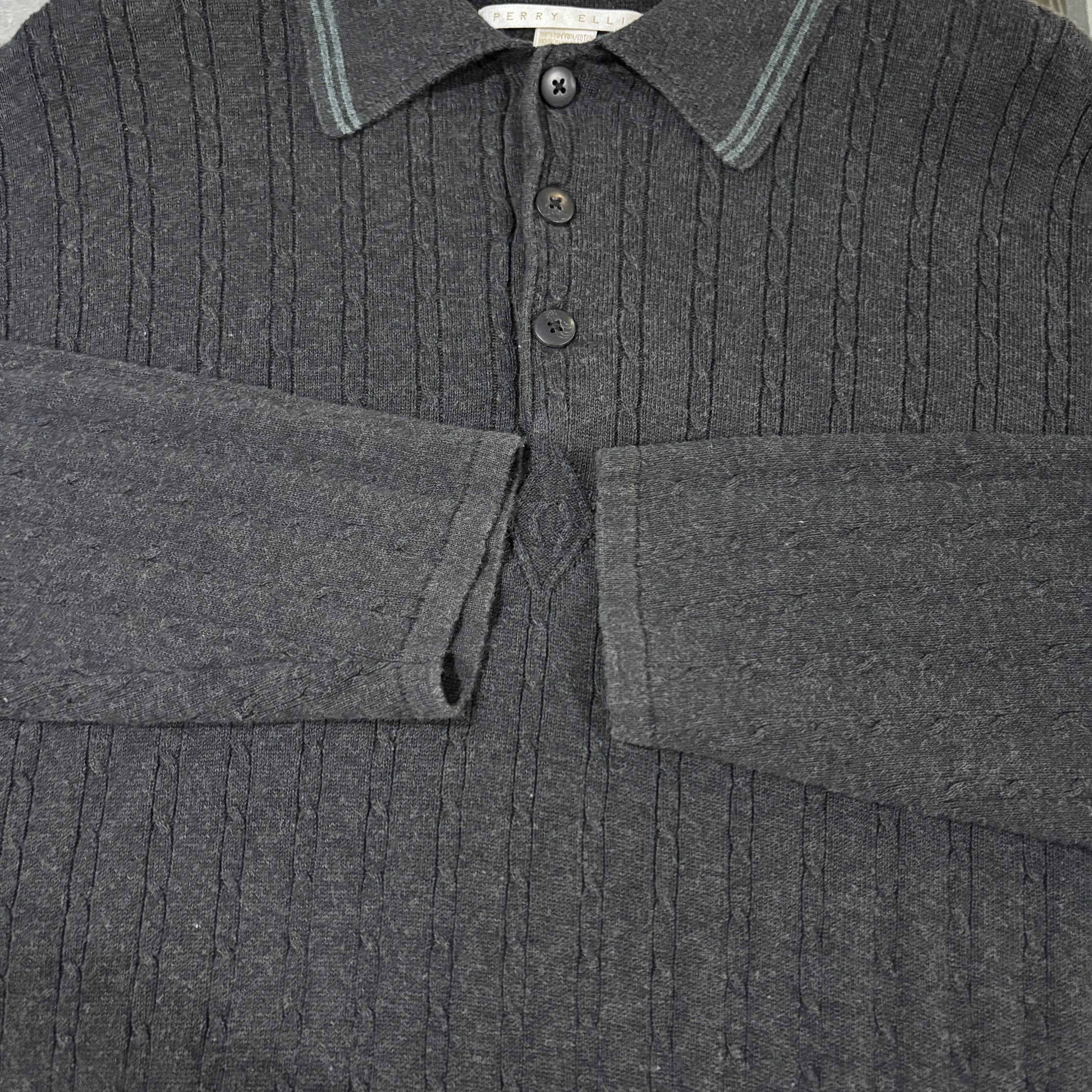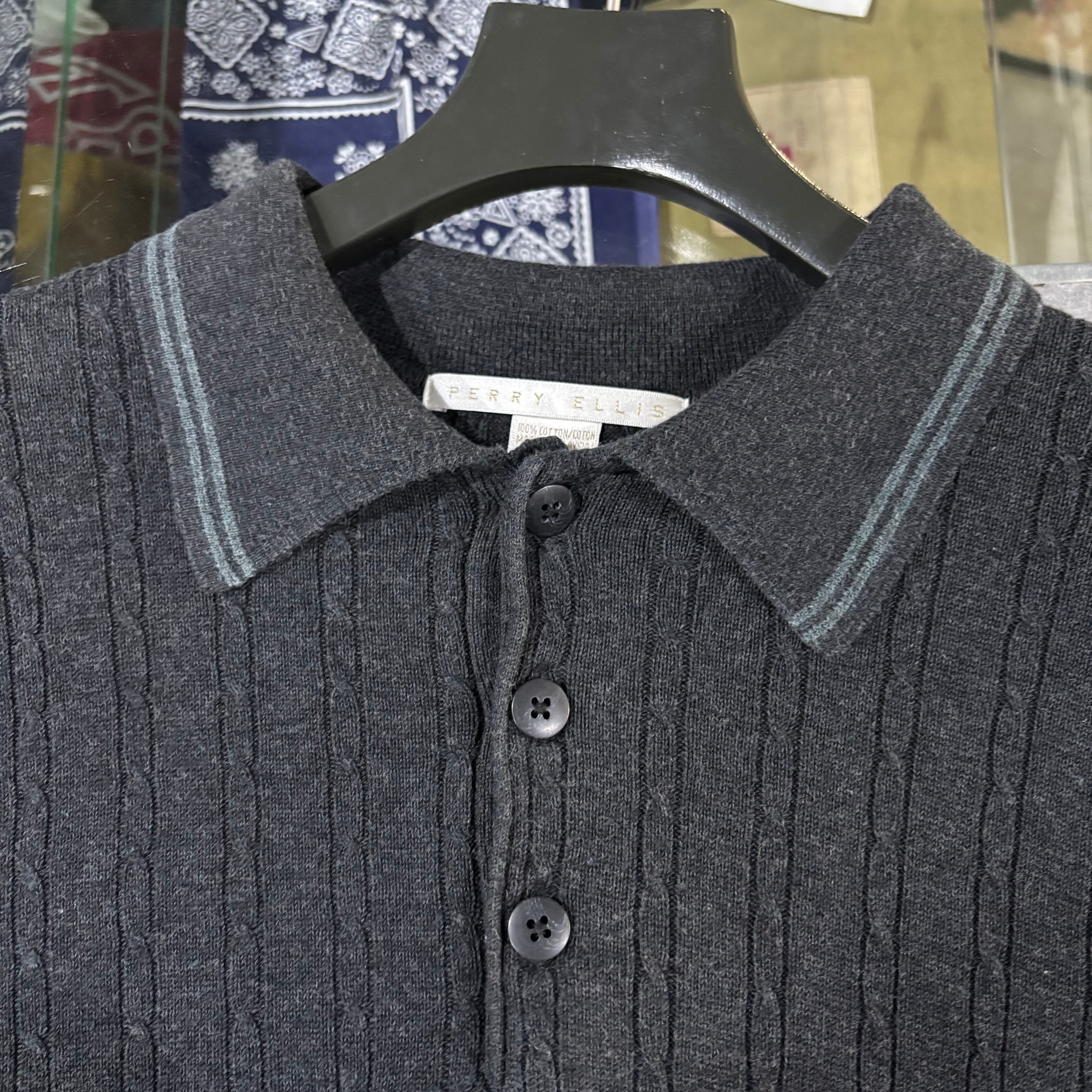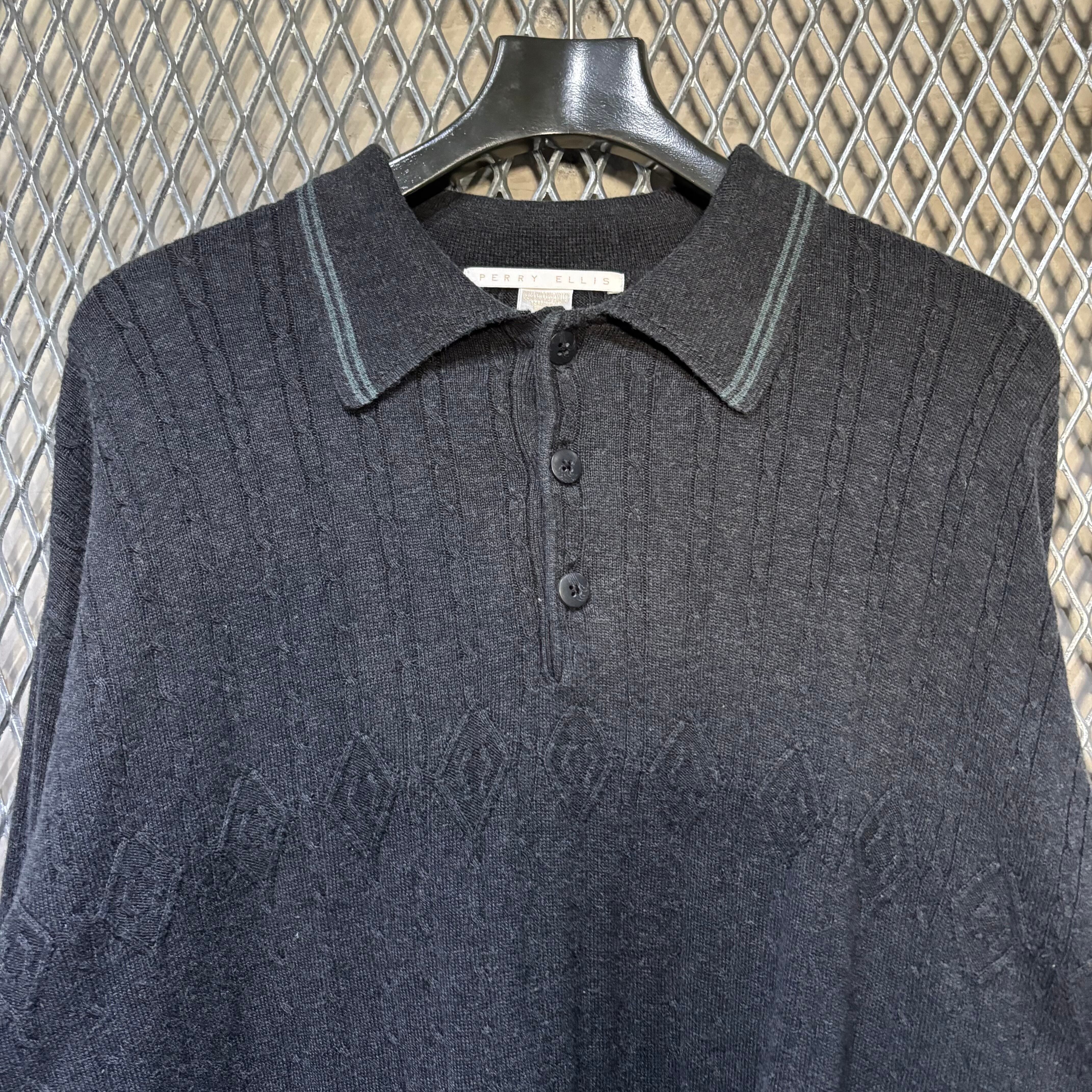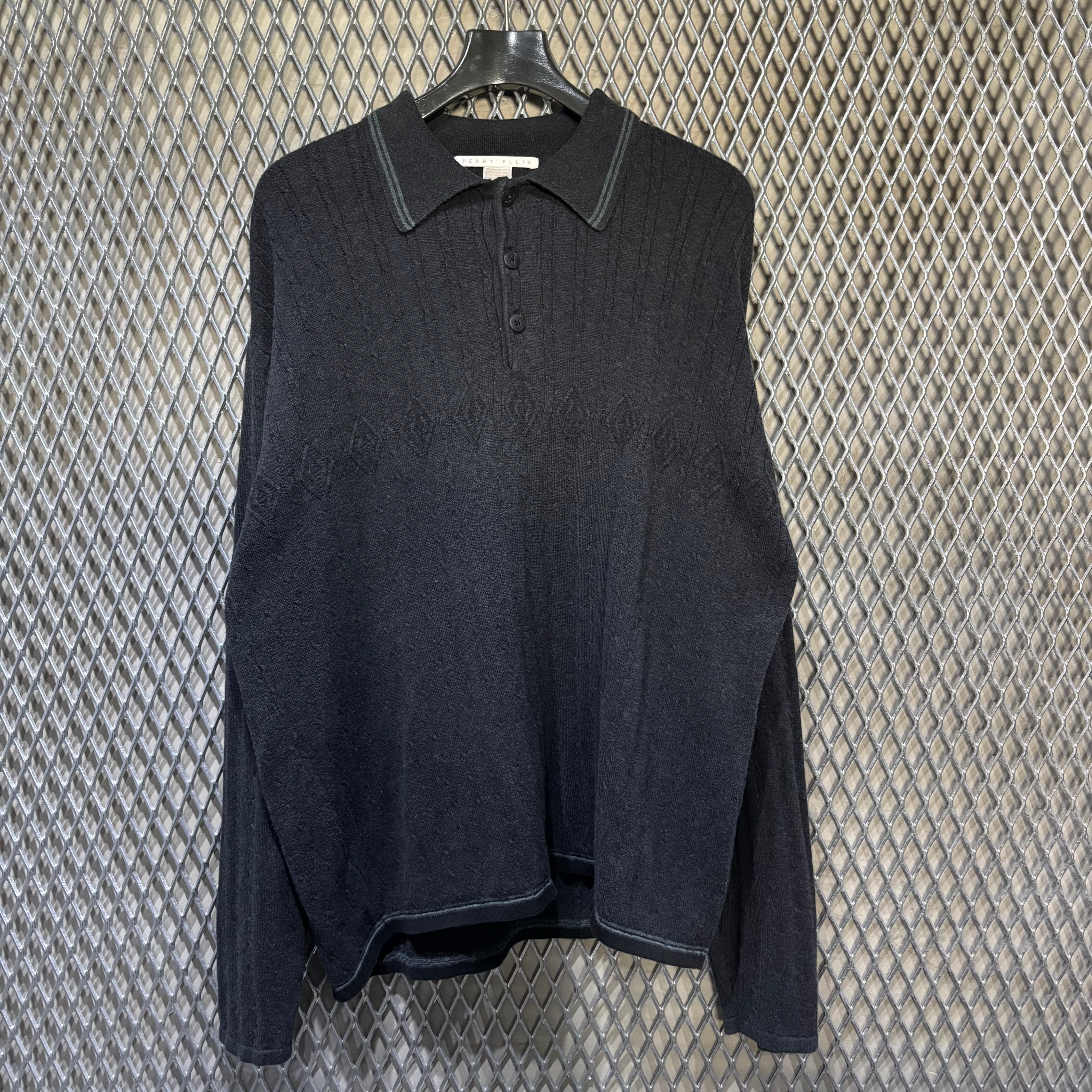 00s【PERRY ELLIS】L/S Knit Polo Shirts