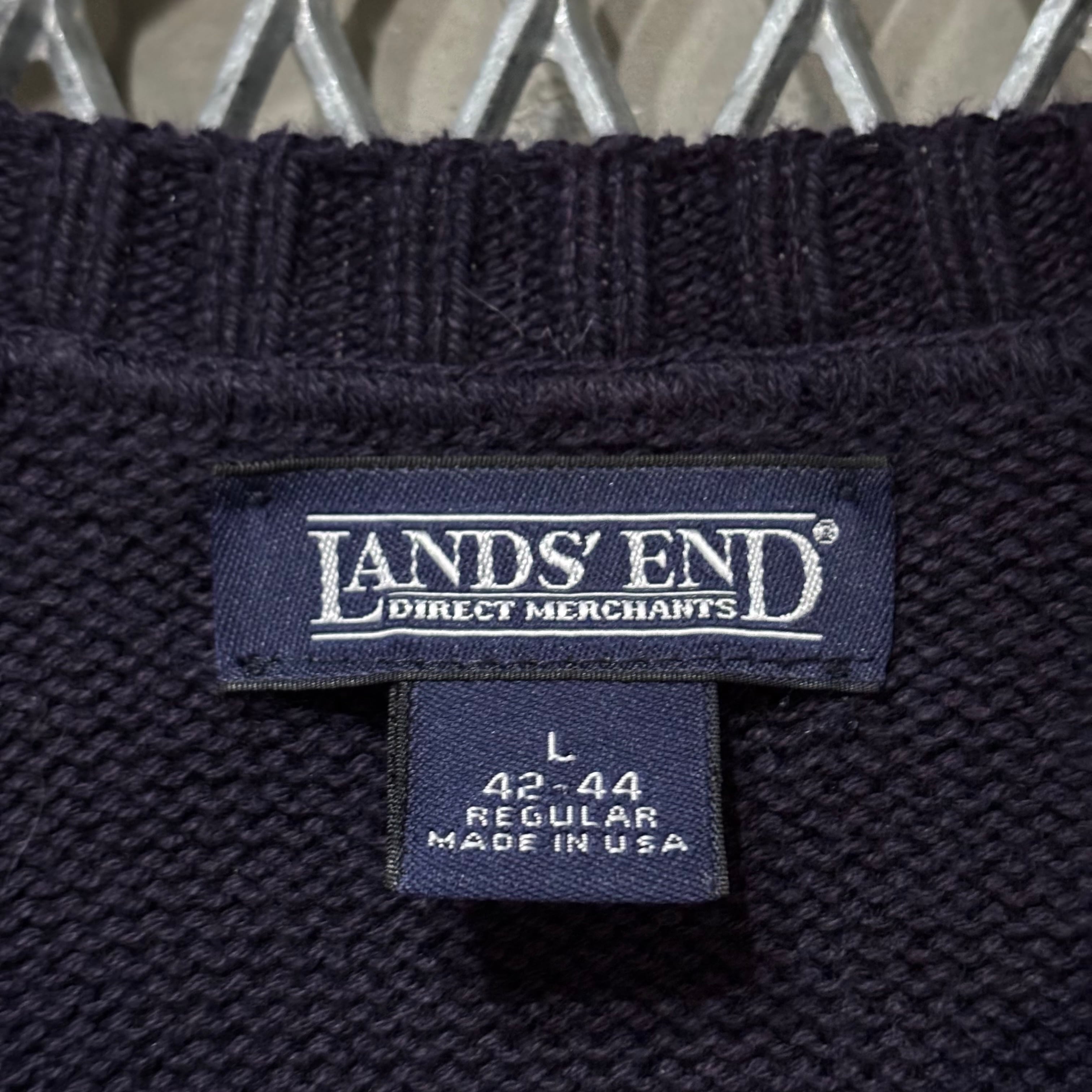 90s【LAND'S END】Cotton Knit Sweater USA製