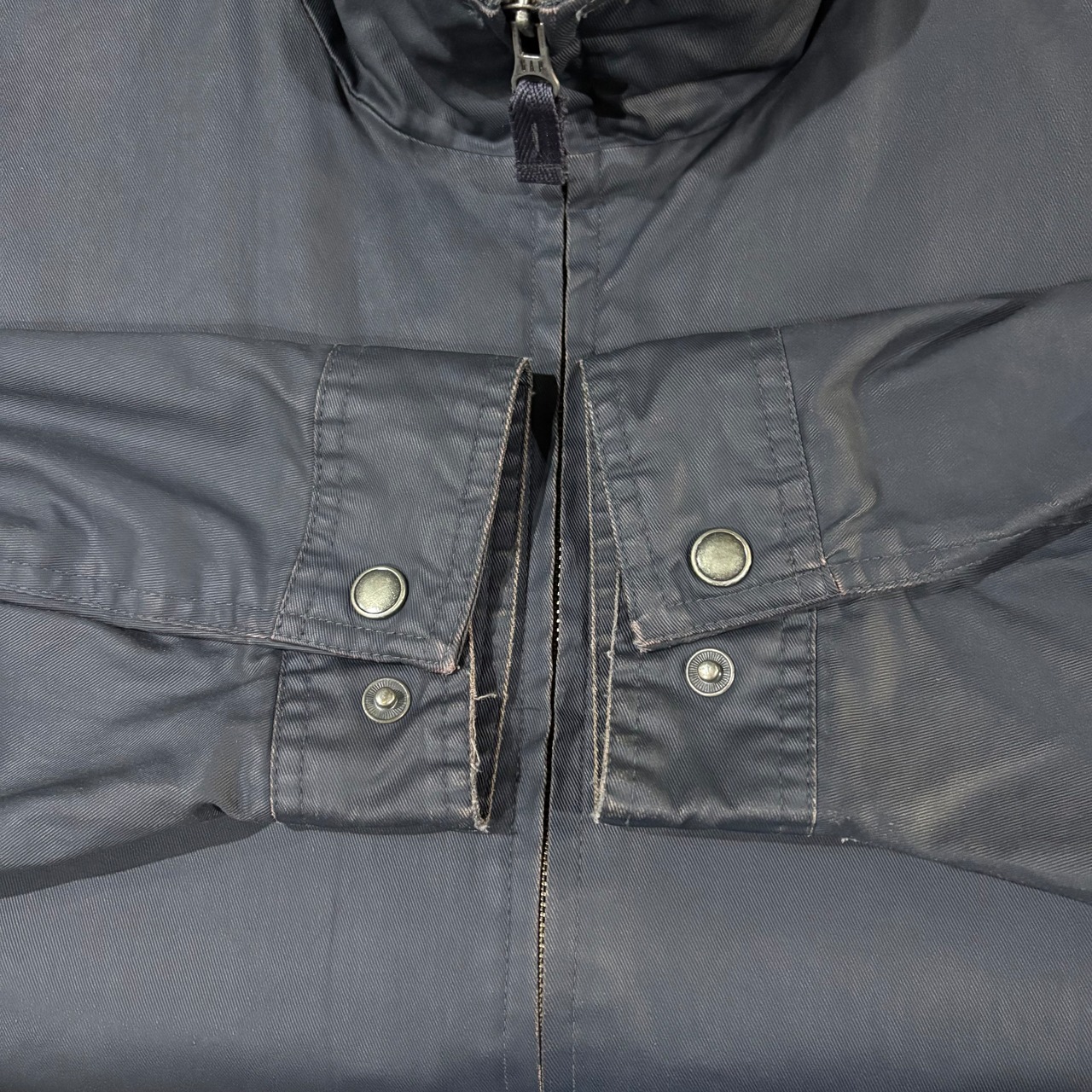 襟元、袖先、ジップ付近など部分的にスレ、汚れあり