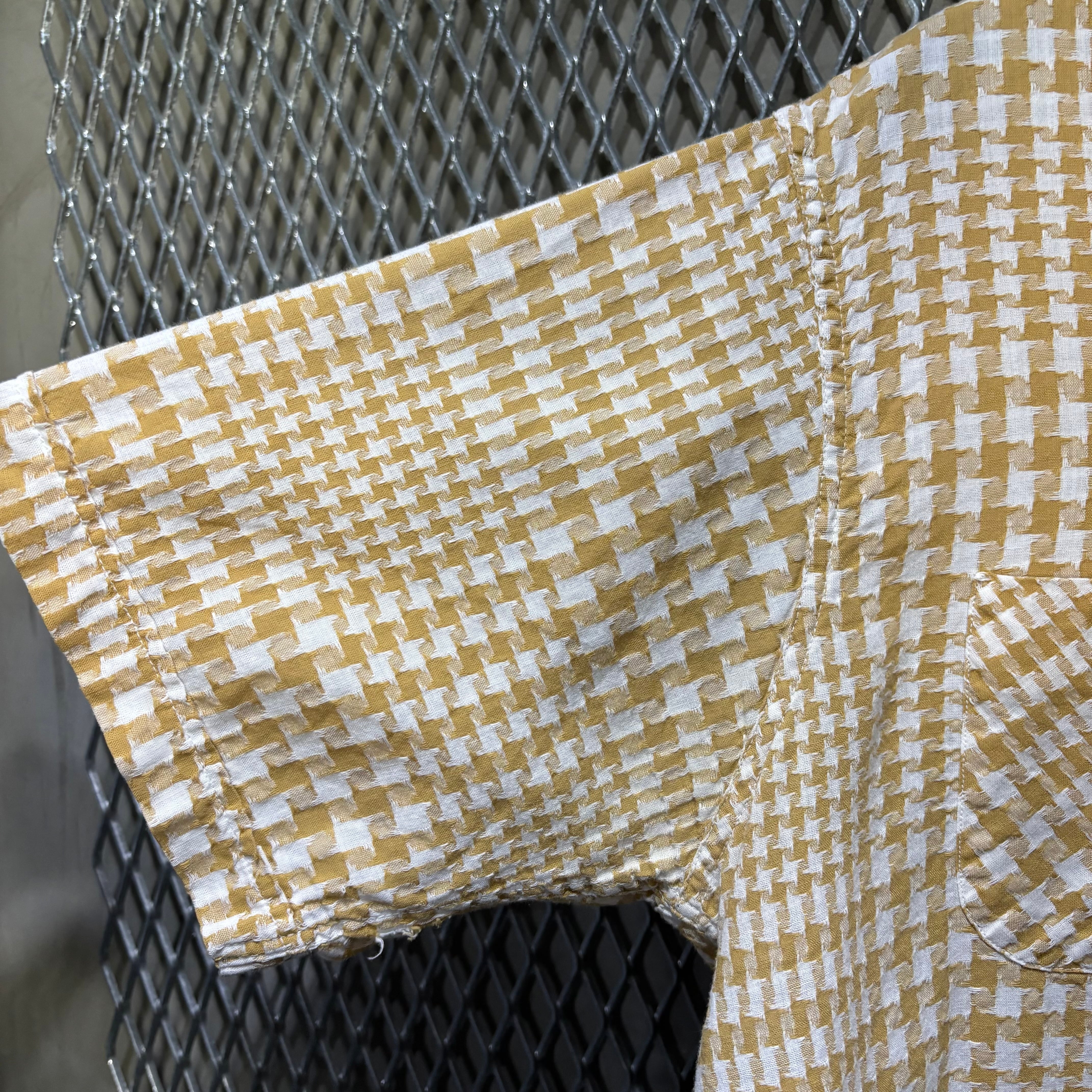 大きさの異なる手裏剣のような柄は引きで見るとチェック柄になっているデザイン