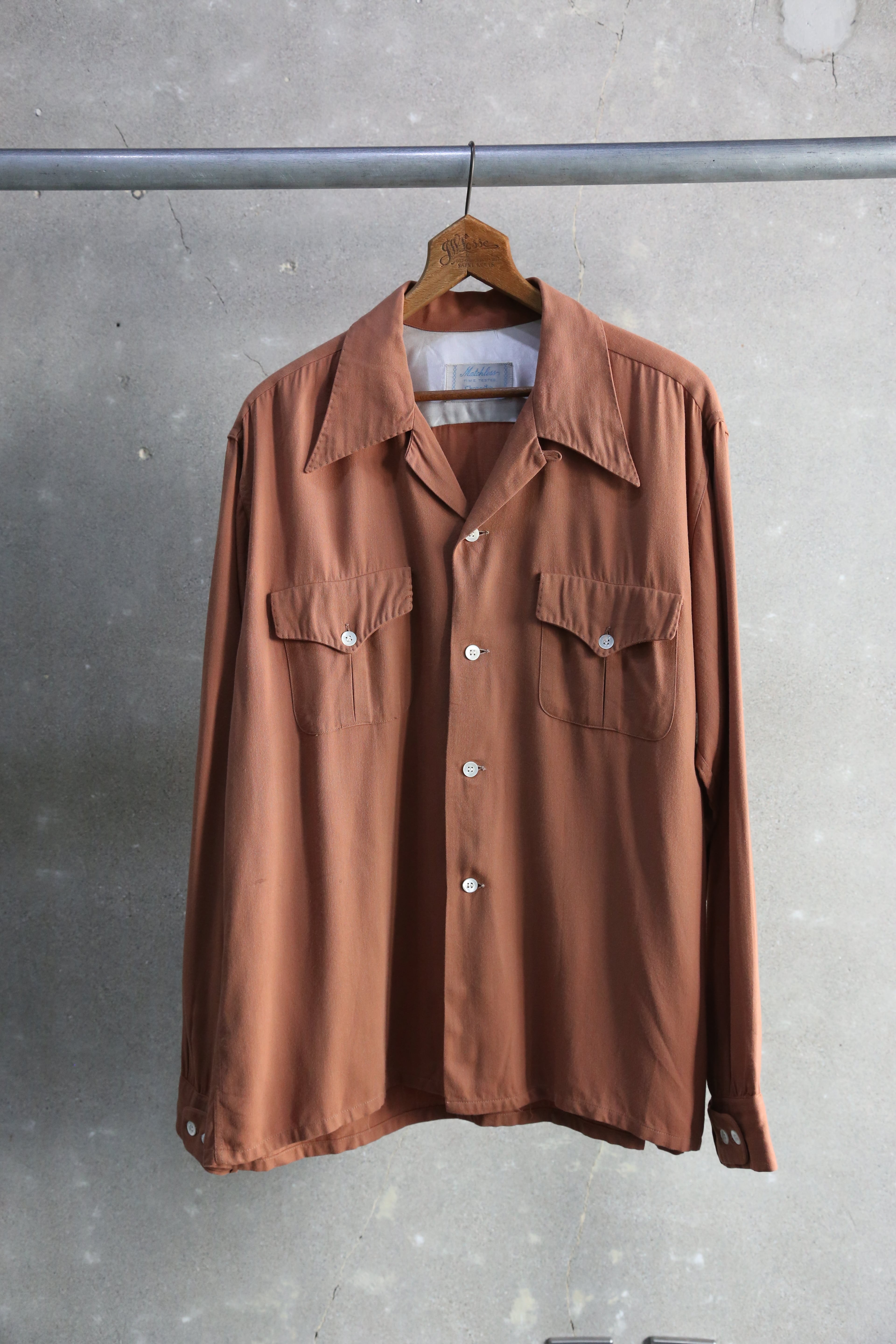 40s【Matchless】L/S Rayon Open Collar Shirt