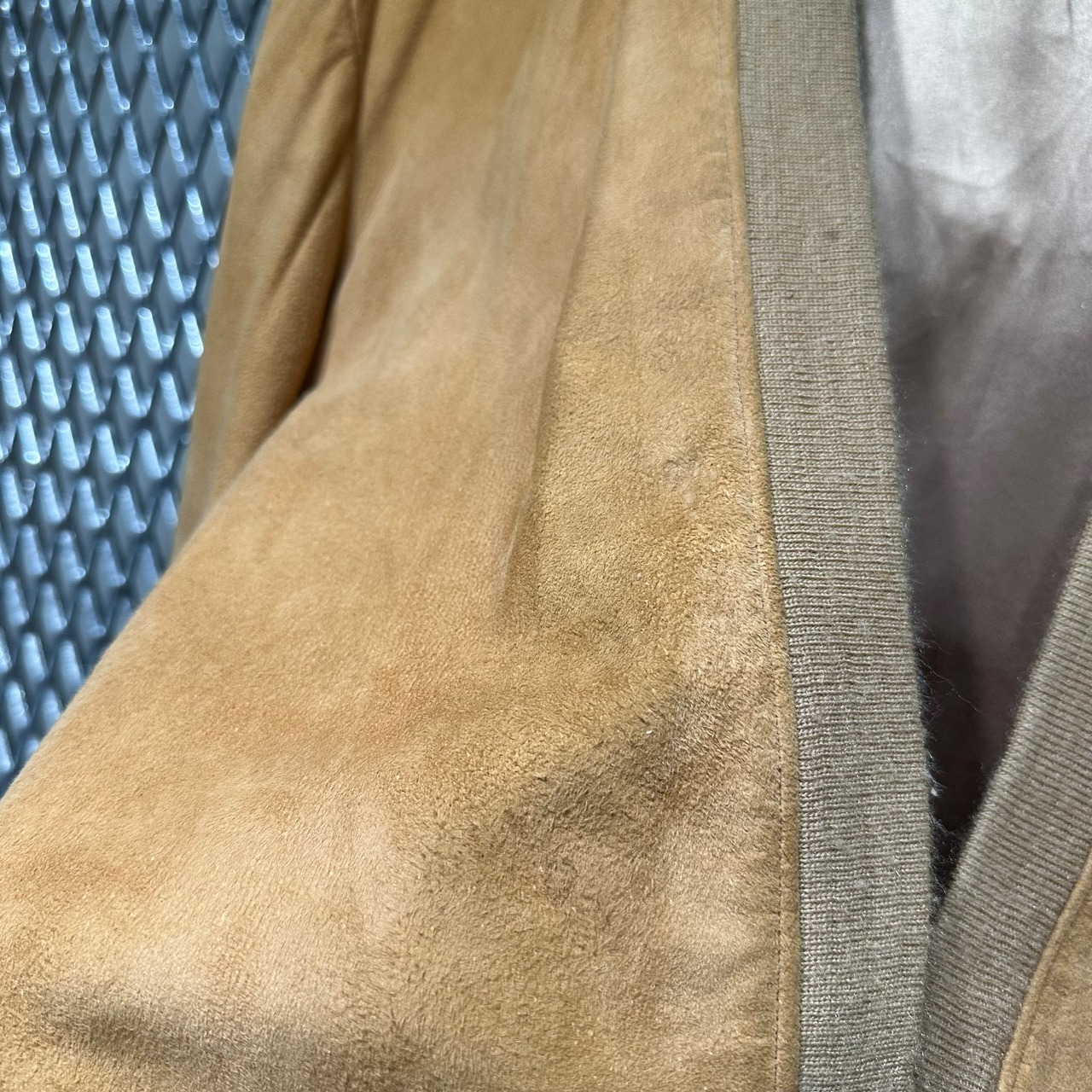 ヌバックレザーのカーディガン