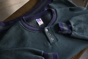 ヘンリーネック仕様のスウェットシャツ