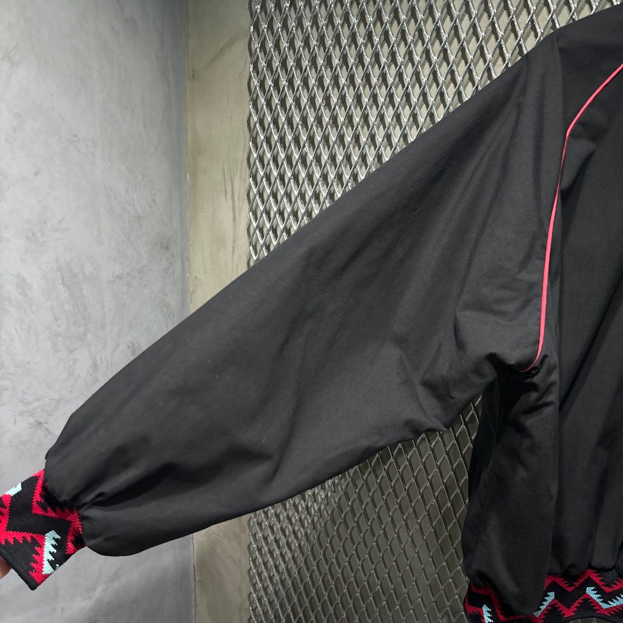 リブのネイティブパターンの装飾が特徴的