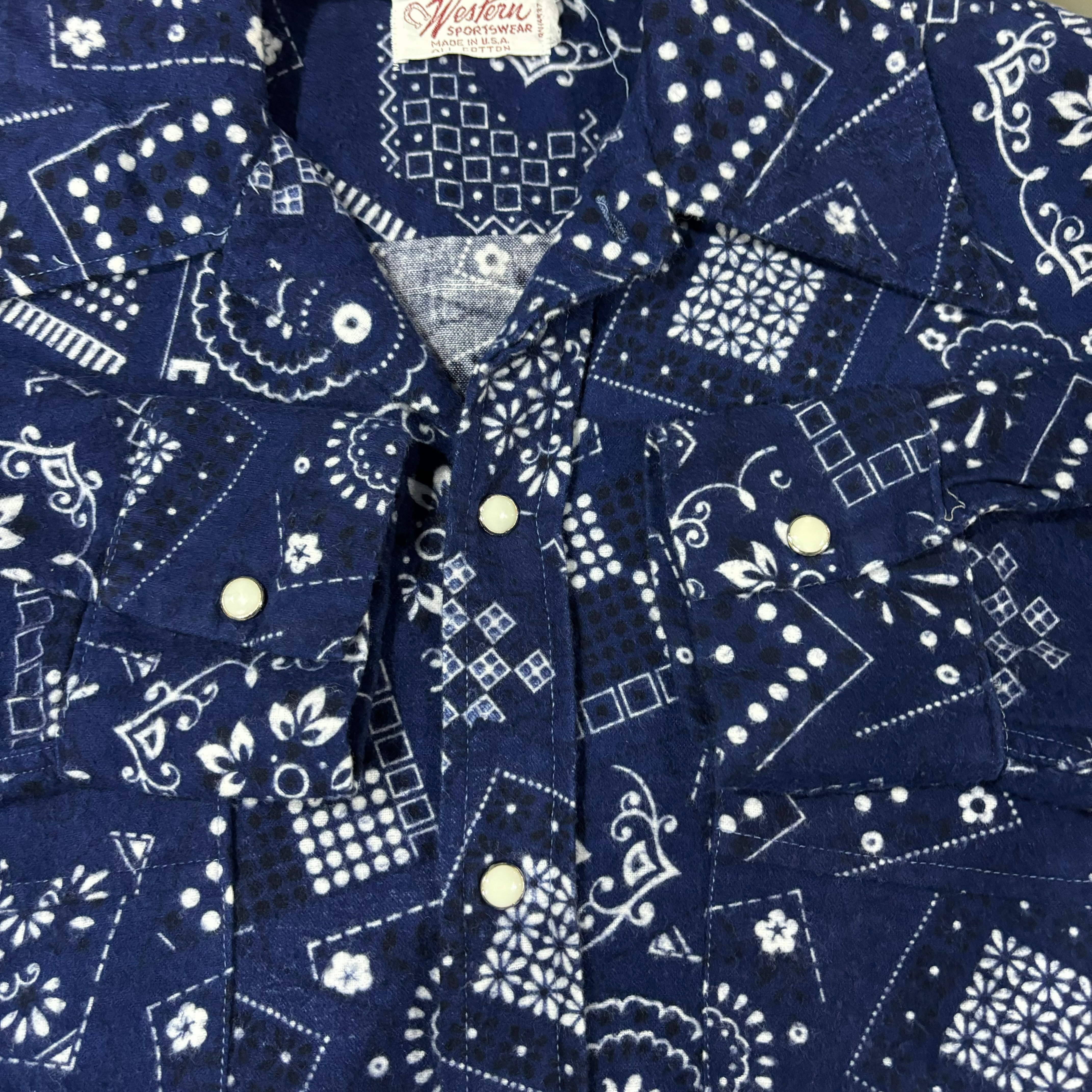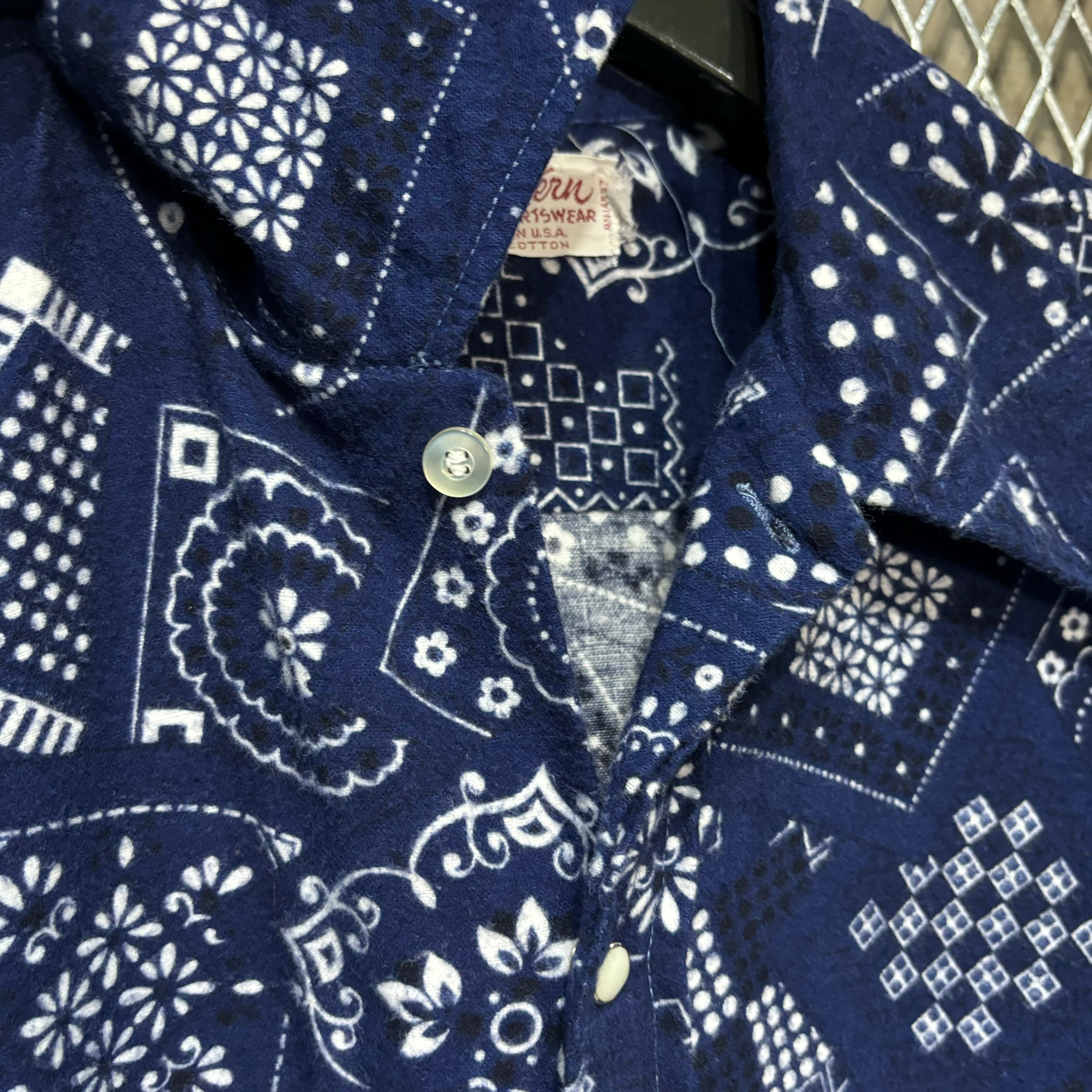 70s【Western Sportswear】Print Flannel Western Shirt