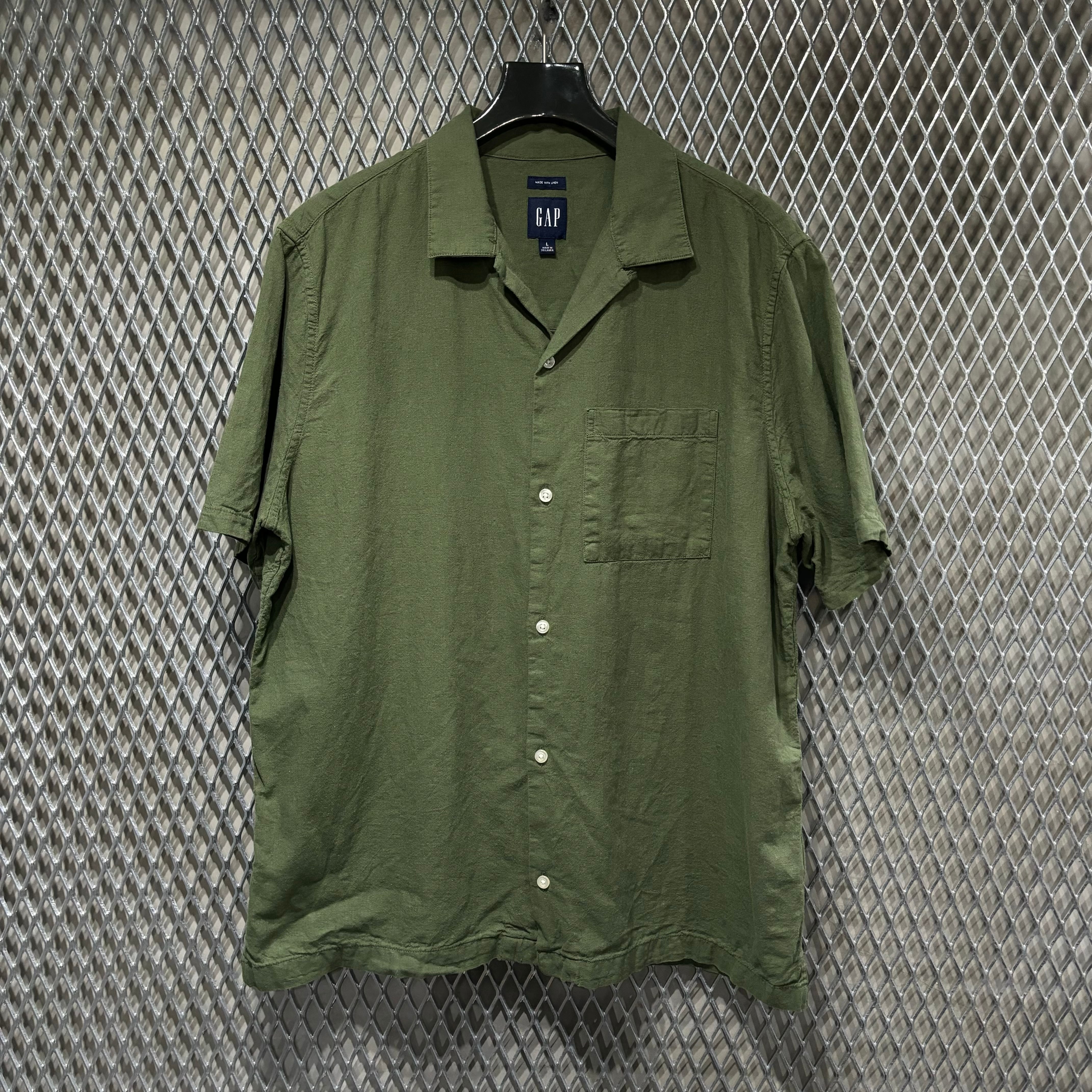 【GAP】S/S Linen Open Collar Shirt
