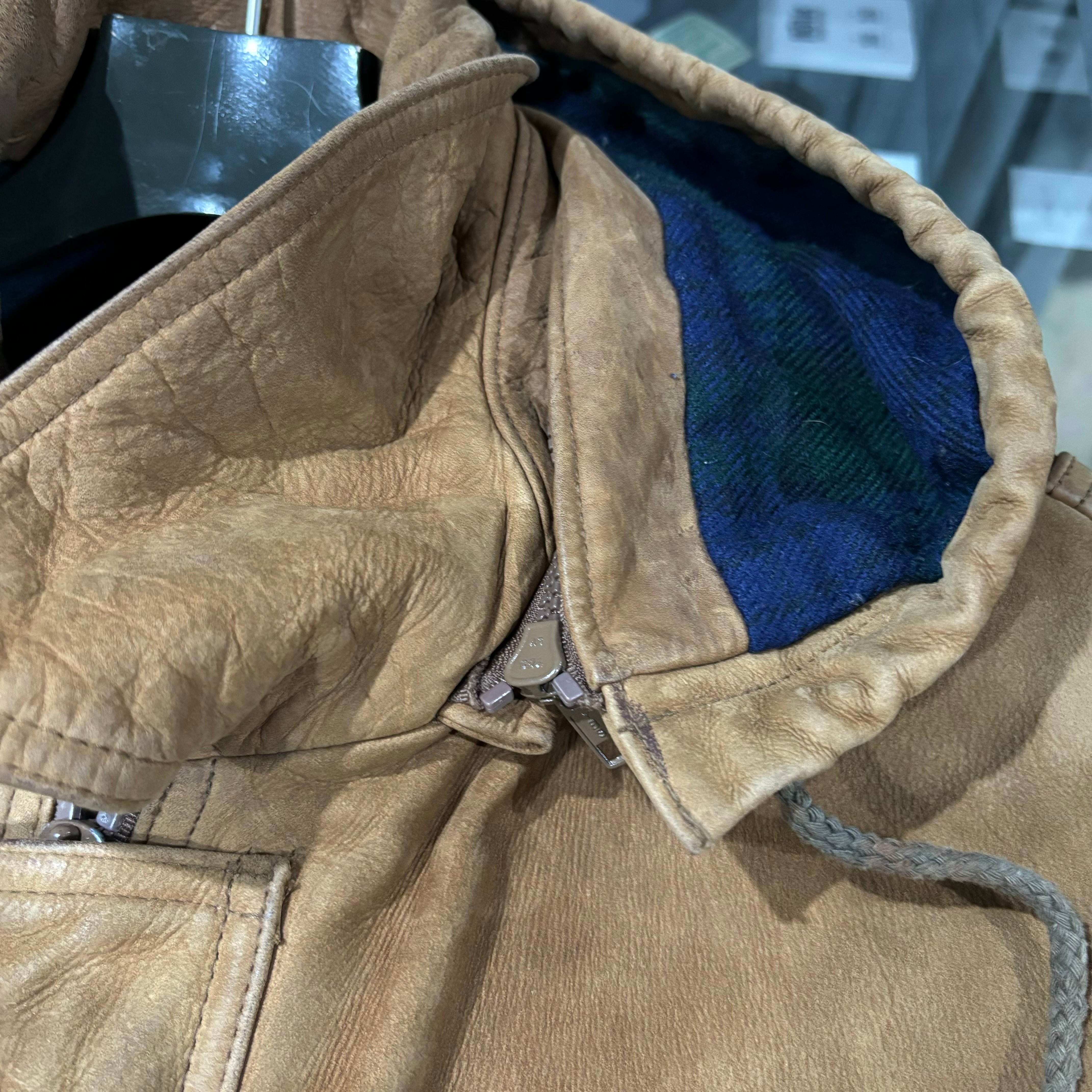 ブラックウォッチのライニング、レザーのタグなど細かい所にブランドらしさを感じます